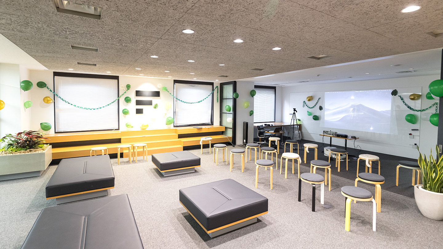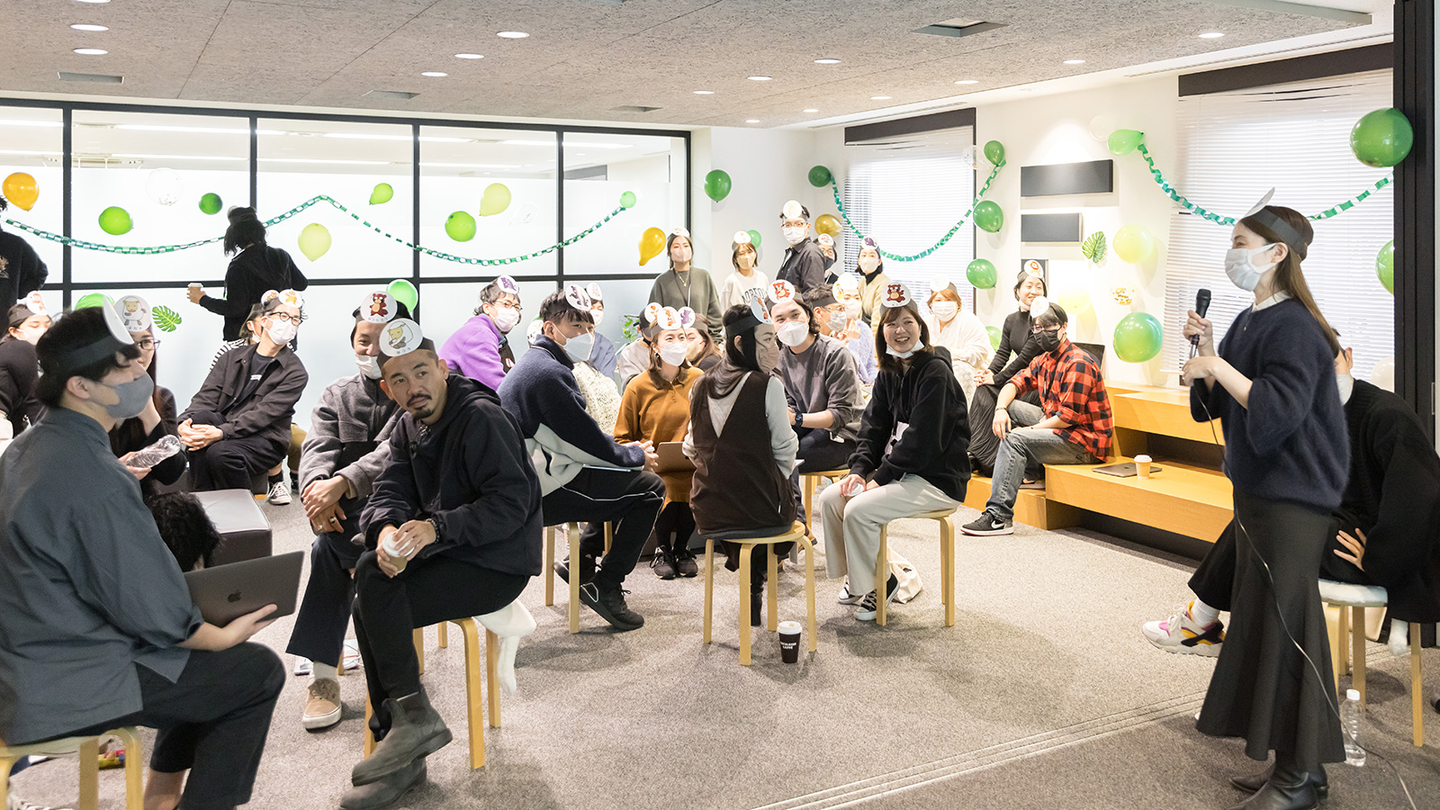 全社会の開催場所は、東京赤坂オフィス。東京・京都の合同開催は3年ぶり。リモートワークが定着し、新しく入社したメンバーも増えた今、今回交流するのが初めてと言うメンバーもたくさんいました。昨年に続き、一部オンライン参加のメンバーがいるハイブリット形式で行われました。