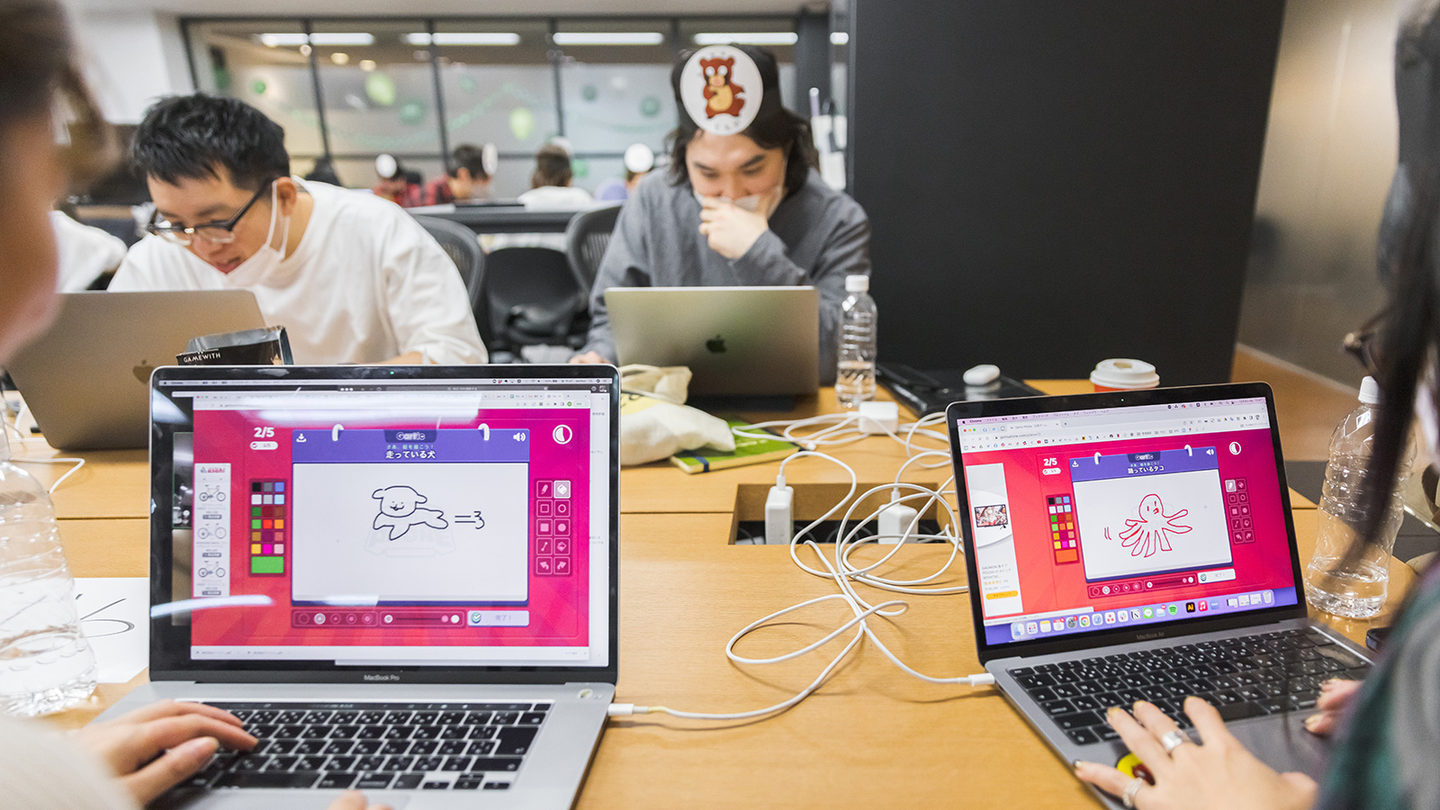 最後の結果発表では、いろんなチームのイラストGIF画像を公開。さまざまなジャンルの画伯が描く独特なタッチや表現力、そして、ズレていく文章と絵に、会場は笑いの渦に包まれていました。
