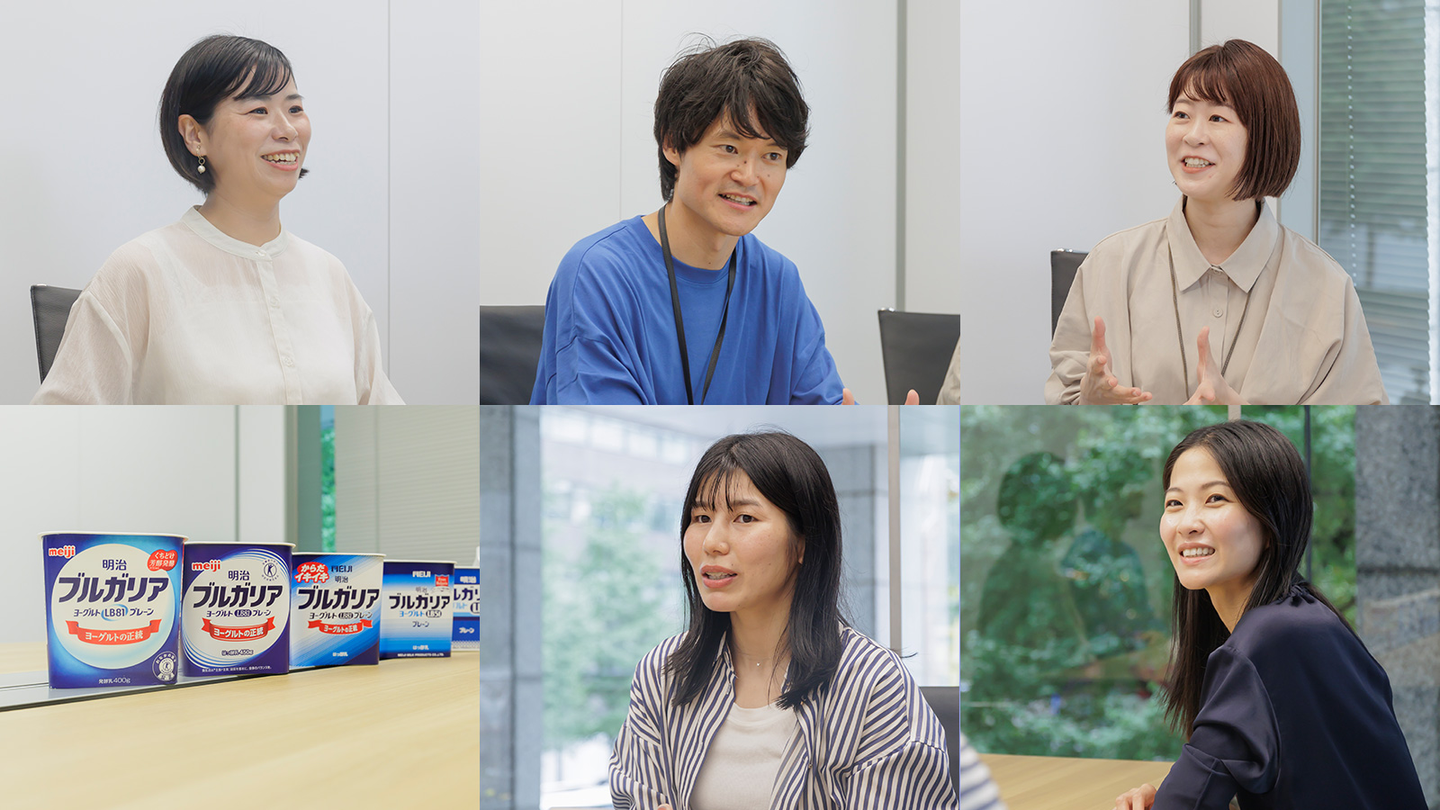 須川:明治は食品メーカーとして、健康・おいしさ・楽しさ・安心を届ける会社です。社内の人間に対して「人がいい」と言われることが多く、親しみやすさのある会社だと思います。今日、鼎談に参加しているメンバーもそうですが、おしゃべりな人が多いんですよね。本当に、しゃべり出すと止まらないくらい(笑)。でも、根は真面目。仕事をするときはする、そして遊ぶときは遊ぶ、というメリハリがありますね。どの部署も同様で、会社全体がそんな雰囲気だと思います。