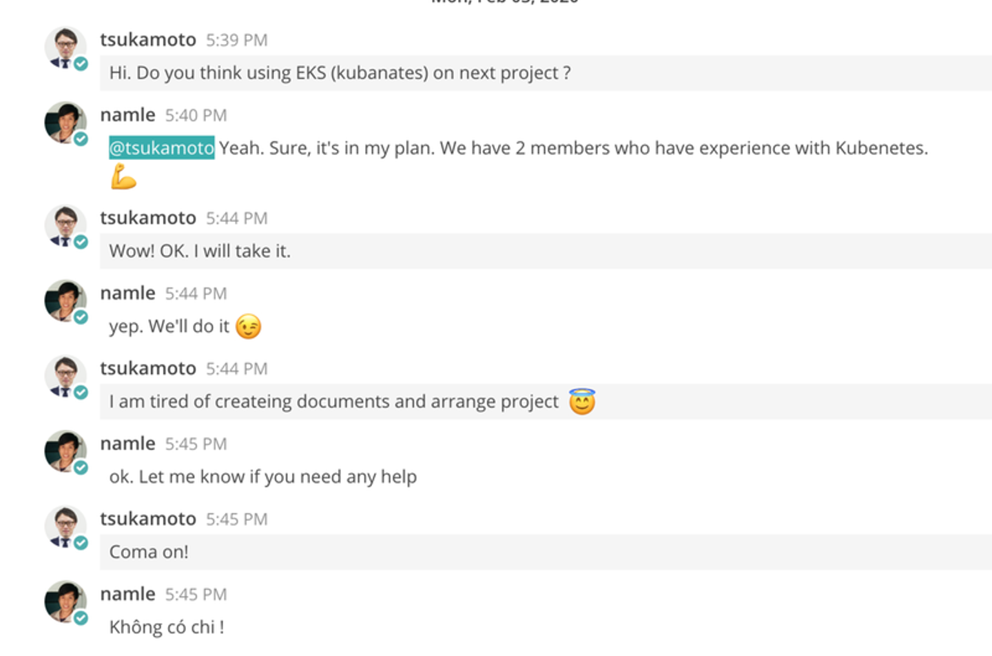 逆にいうと、新しい案件ばっかりなんで新しいことにチャレンジしやすいと思います。例えば、(ベトナムでオフショア開発をしている)Teqnological のエンジニアが「新しい技術を使いたい」というのを吸い上げて技術の選択肢を確保してあげたりして、自分も新しいことができる状況を自分で作ってますね。