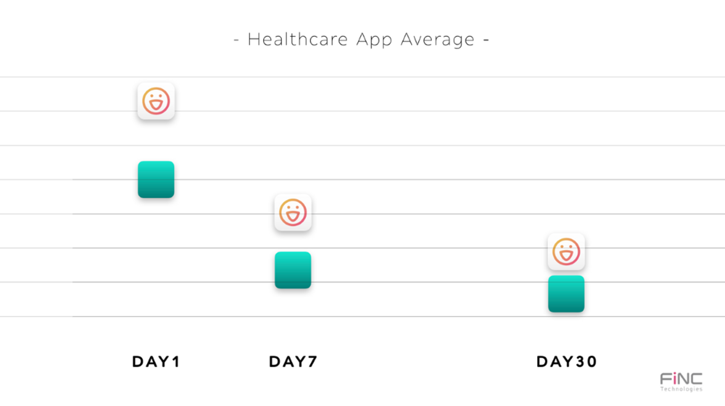 AppAnnieの数値をベースにしたグローバルヘルスケアトップアプリの平均RRとの比較