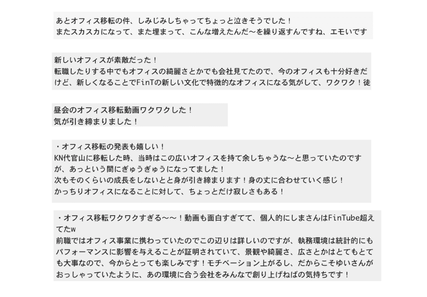 移転発表時のメンバーの反応(社内Slackの日報にて)