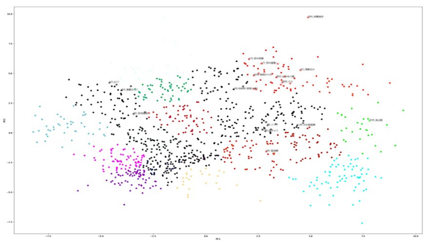 SNS上では、インフルエンサーとそのフォロワーによって、多種多様なコミュニティが形成されていますが、FISMではインフルエンサーのフォロワーを機械学習により解析し、趣味嗜好、興味関心などの属性が近いインフルエンサーコミュニティの可視化を行っています。