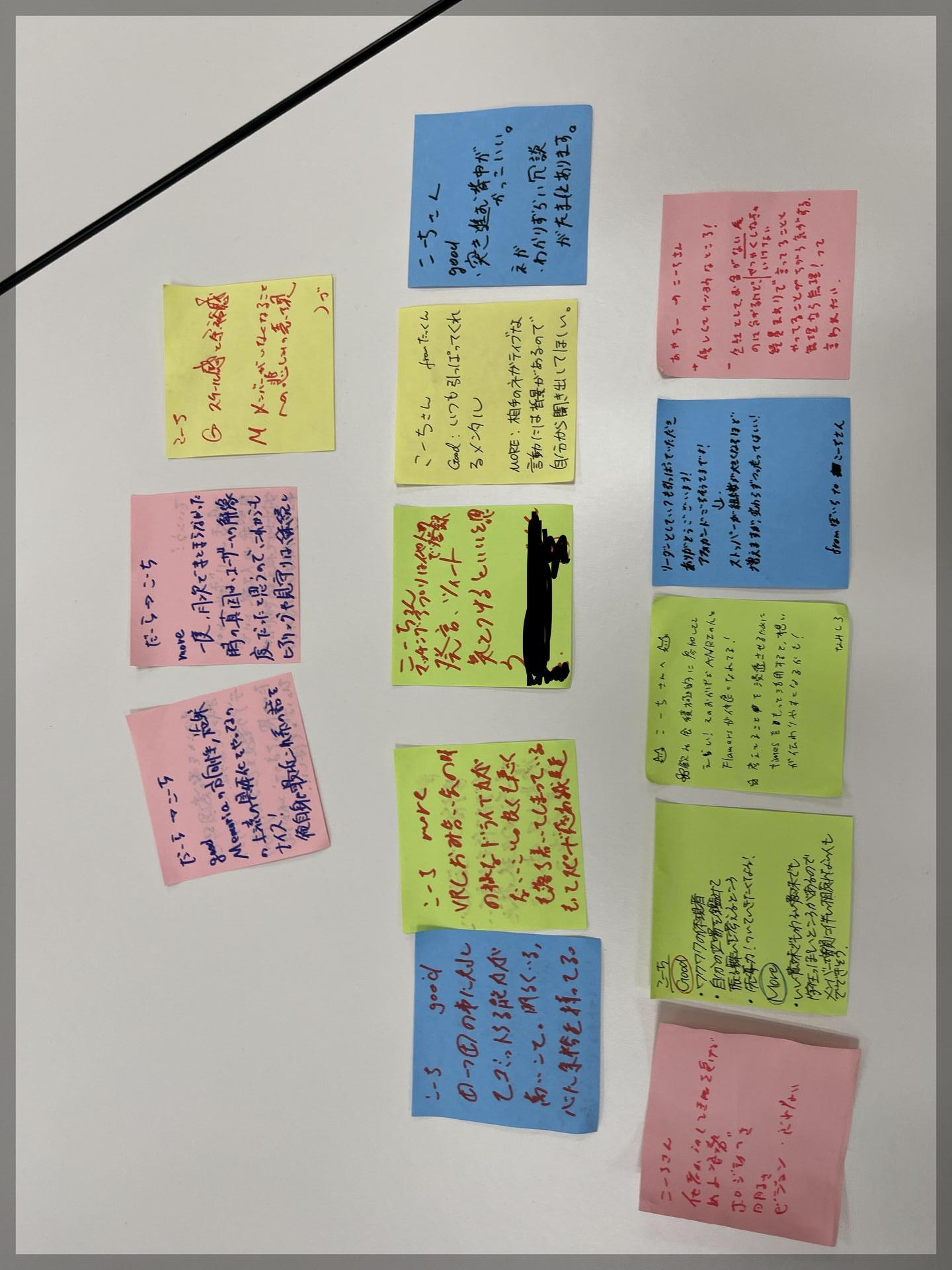これは、まず付箋に自分以外全員に向けてのGOOD & MORE(素敵だと思うところと、改善した方がいいと思うこと)を書きます。