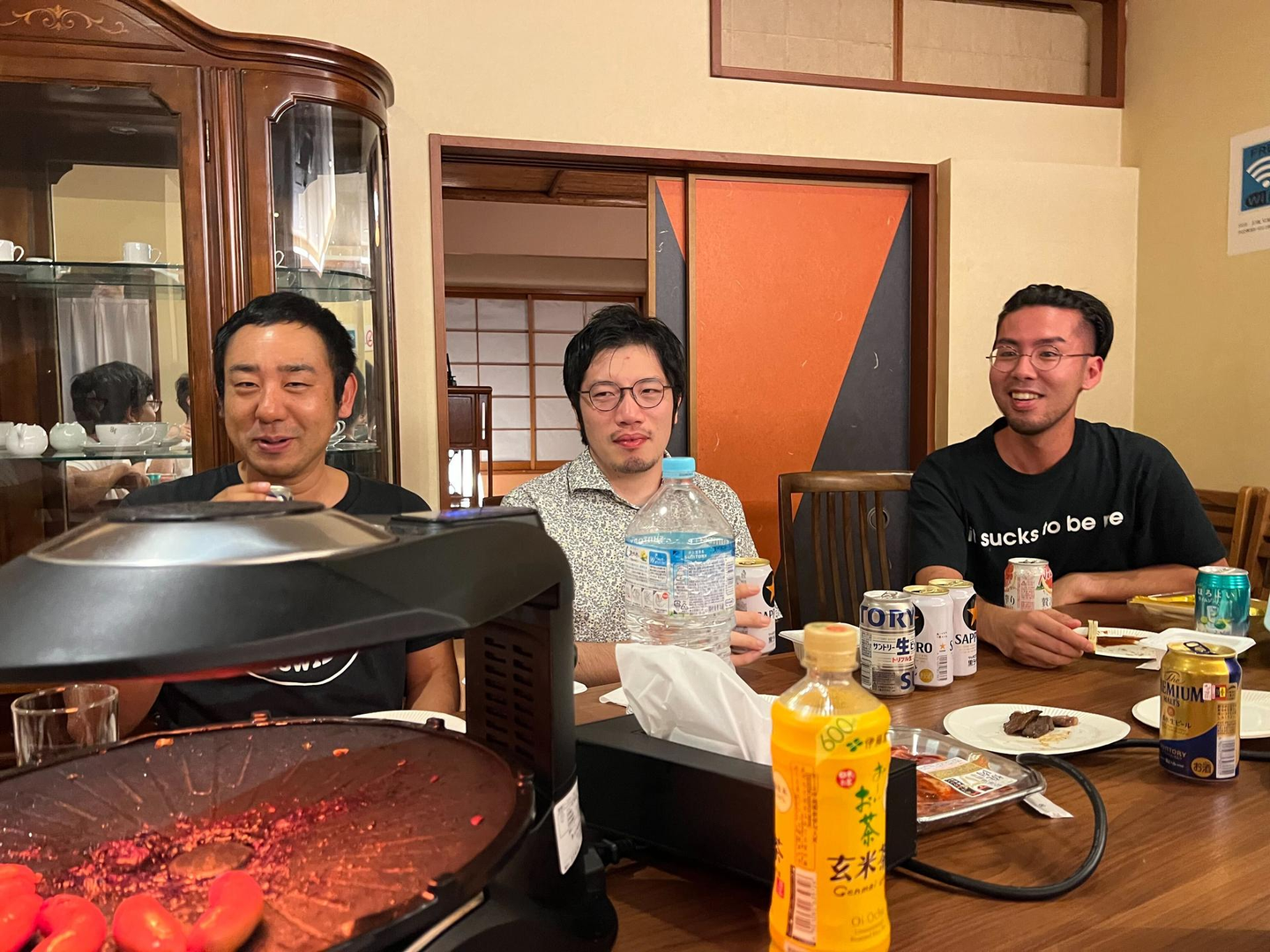 夜はみんなでお酒やお肉を買ってきて、いろんな話をしました!!