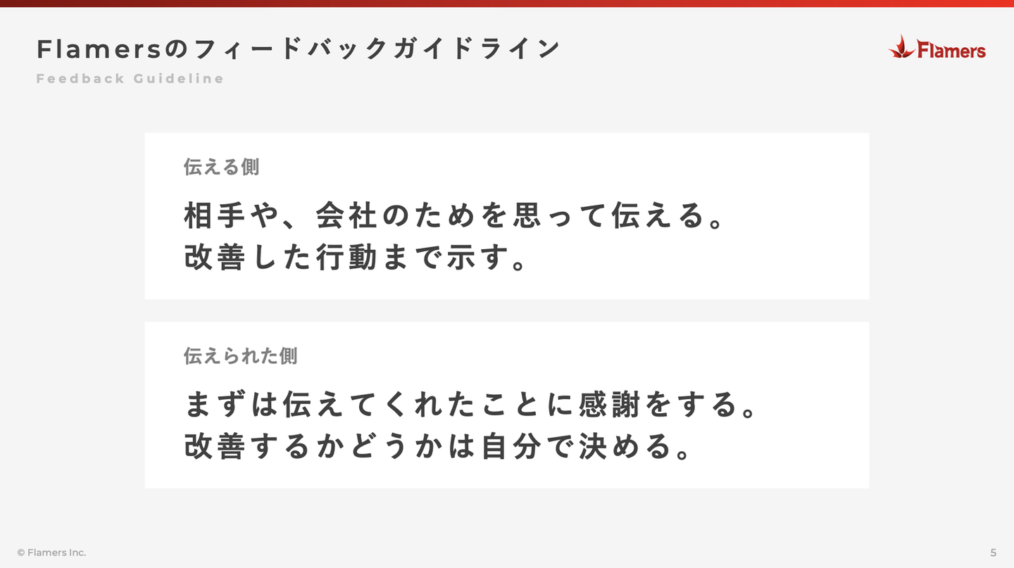 Flamersはお互いのフィードバックをする文化を大事にしています。
