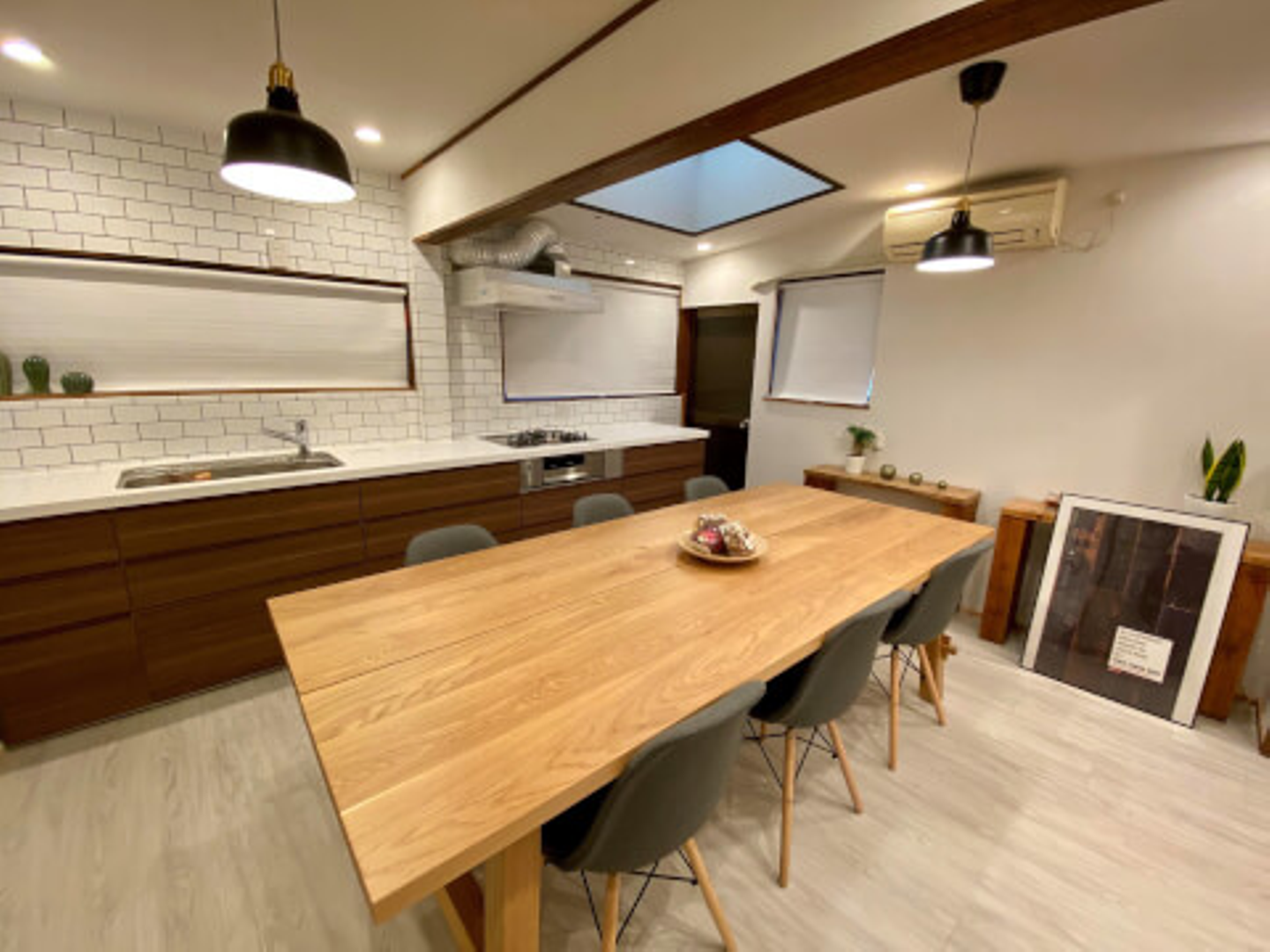 ここは、みんなで食卓を囲んだり、休憩時にゲームやボードゲームをしたりはもちろん、作業机として使ってもOK。