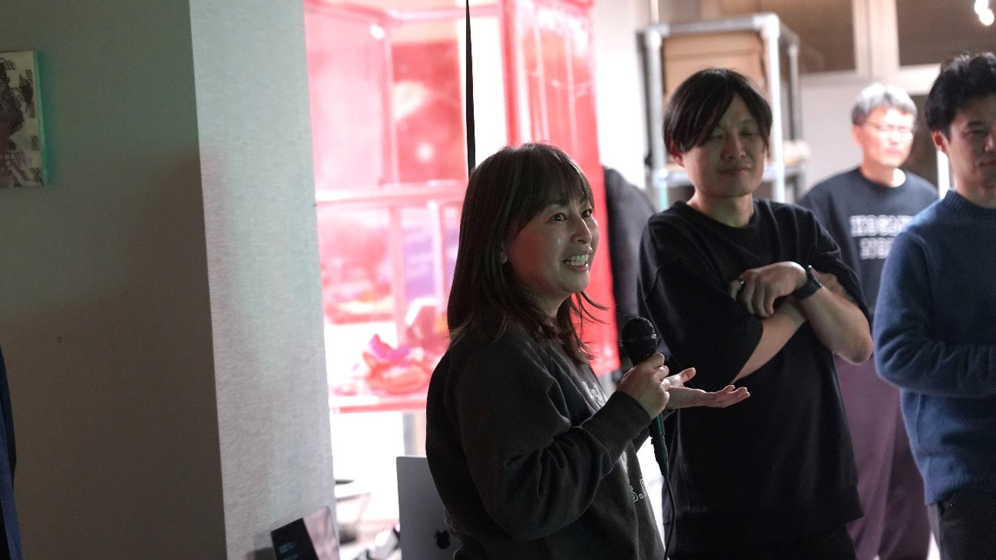 CTO宮西が、未経験から始めたハードウェアデバイスの開発にどのように向き合ってきたか、その苦悩と飛躍の軌跡を笑いを交えながら語るスピーチが行われました。会場は終始大いに盛り上がり、参加者からも共感や笑いが生まれる場面が多く見られました。