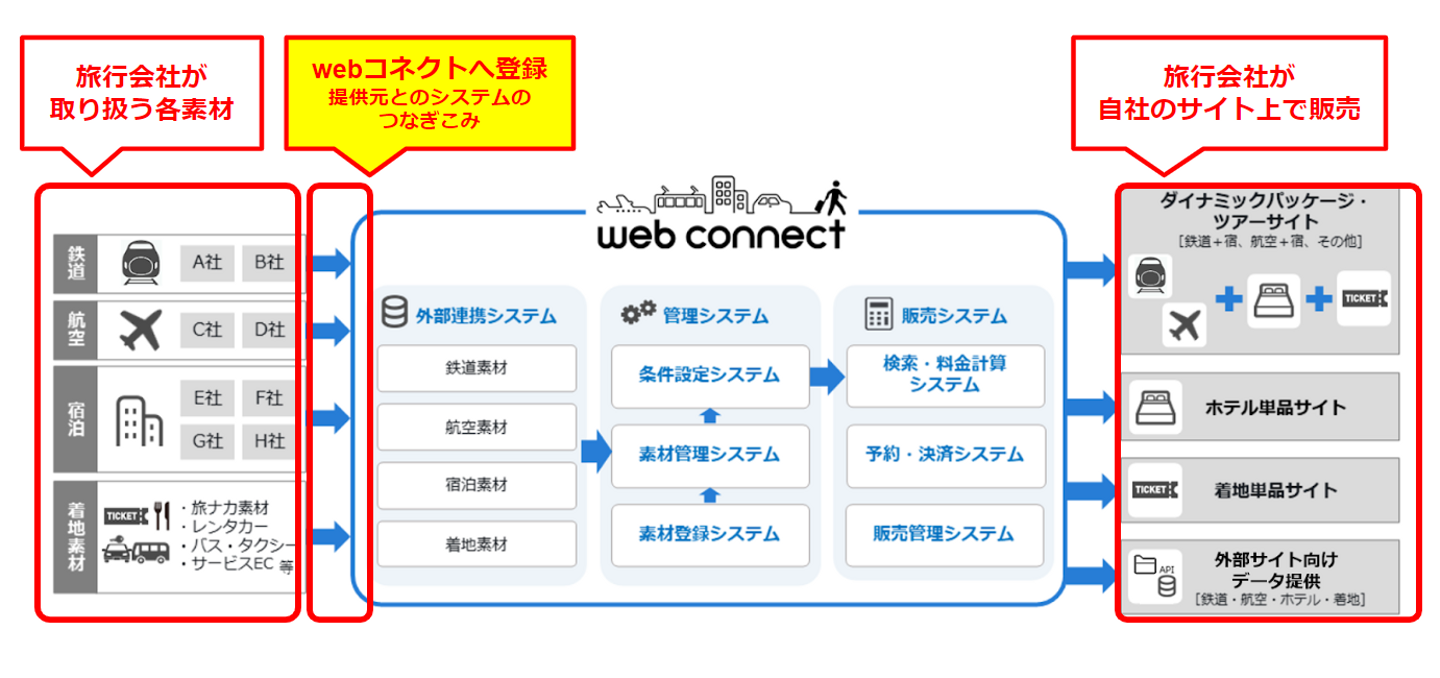 旅行会社としては、自社のサイト上で宿泊施設だけ、移動手段だけを販売するよりも組み合わせて販売できるコンテンツが多いほうが利益につながります。なのでどこの旅行会社もパッケージツアーとして一気通貫での販売をしたいと考えており、だからこそ、それを実現させるためのシステムとしてwebコネクトを導入いただいています。
