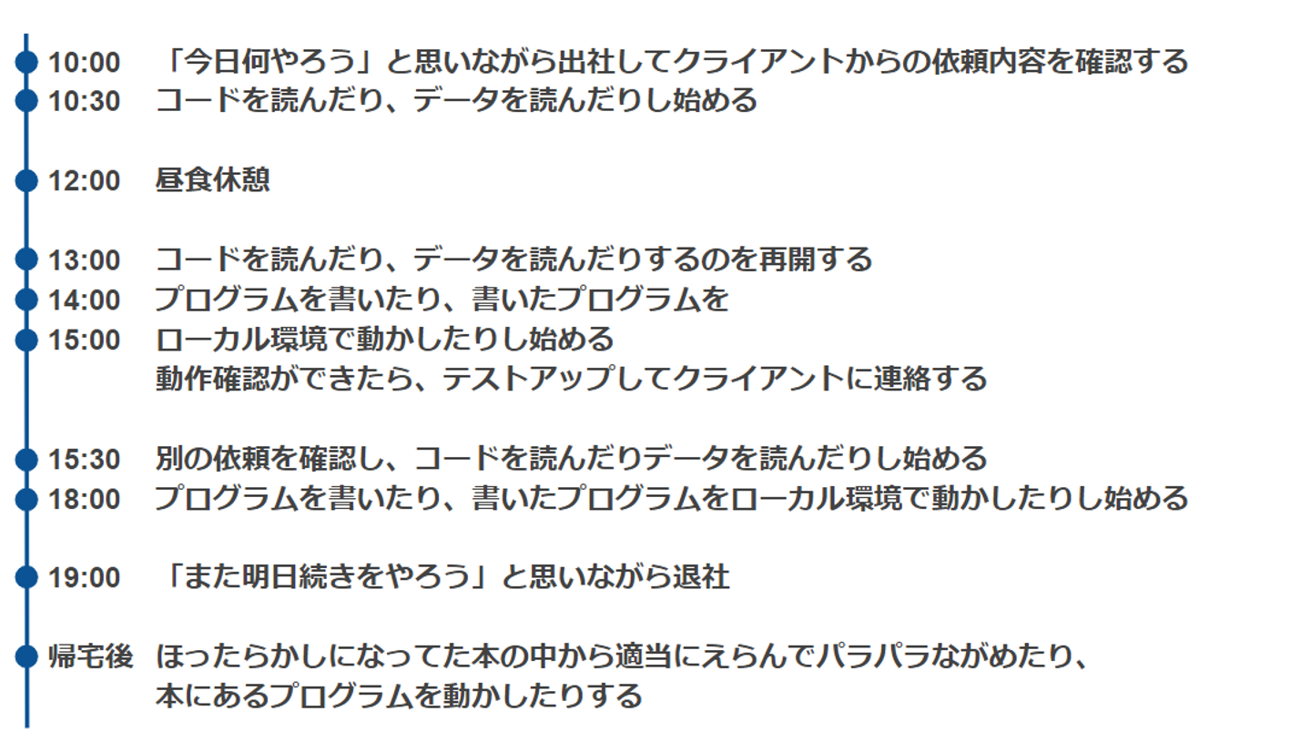 私は仕事中はだいたいプログラムとデータを読んでいます。