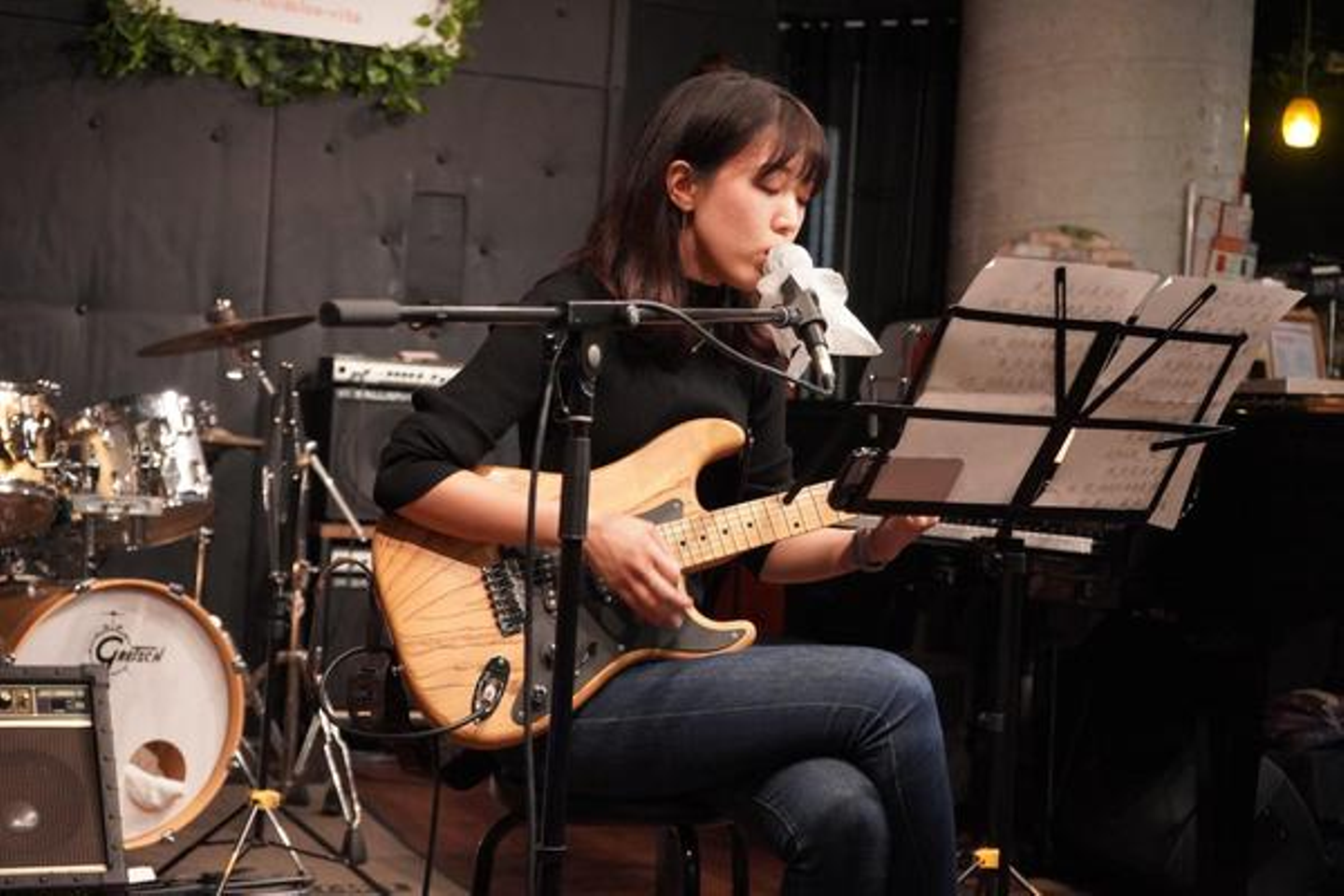 エレキギターを持って登場したのはsakurai氏。少しの調弦をした後に、演奏しだしたのは、ユーミンの夏の終わりの名曲「Hello, my friend」。「生き急ぐときはたしなめて」友人との永久の別れを歌ったこの曲に、哀愁のあるその歌声がとてもはまっていて、誰もが時を忘れるように引き込まれていきました。