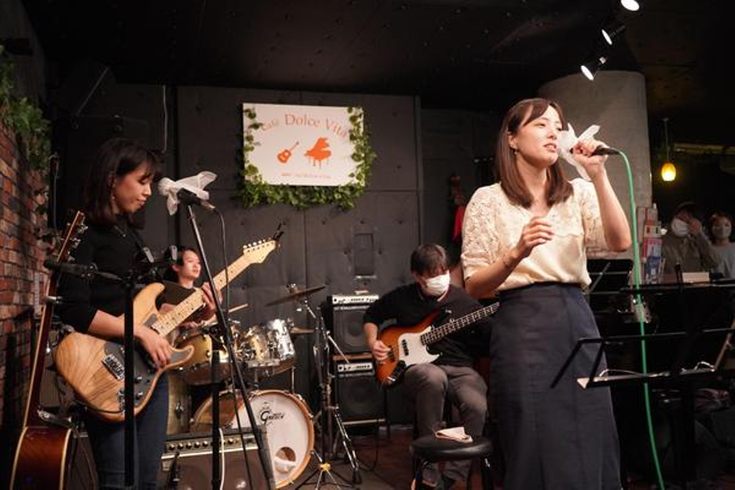 ドリンクはアルコールOKのフリーフローでした。開会は20時。開会の挨拶もほどほどに、「音楽会」は始まりました。今回は秋の音楽祭とのことで、出演者の皆さんはそれぞれ、秋を感じる歌や、秋にまつわる楽曲を用意してきてくれました。ここからは各出演者と、その楽曲を、個人的に感動した印象深い歌詞と一緒に紹介していきます。
