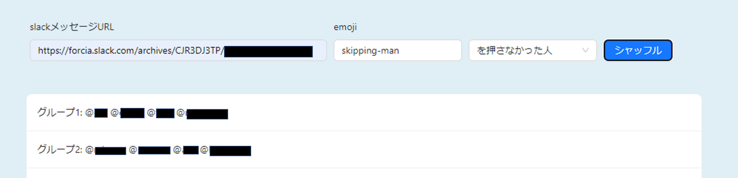 入社年次や所属部署のデータが活きて、十分なシャッフルもできたのではないかと思います。