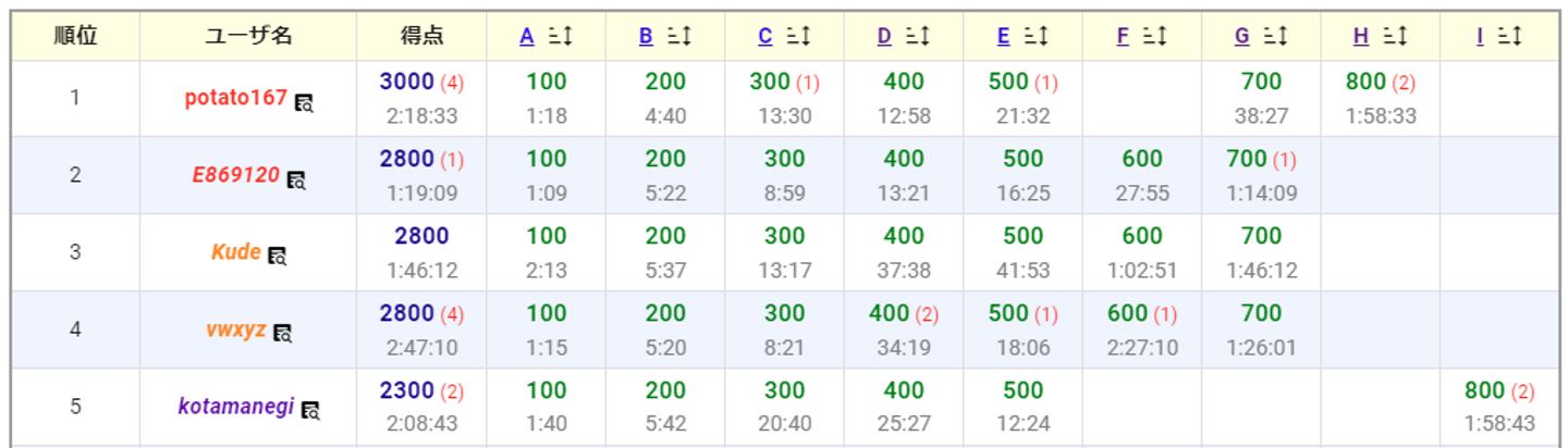 その後、高速化の観点で考慮しなければいけない点がいくつかありますが、コンテスト時間内には6名の方が見事正解していました!