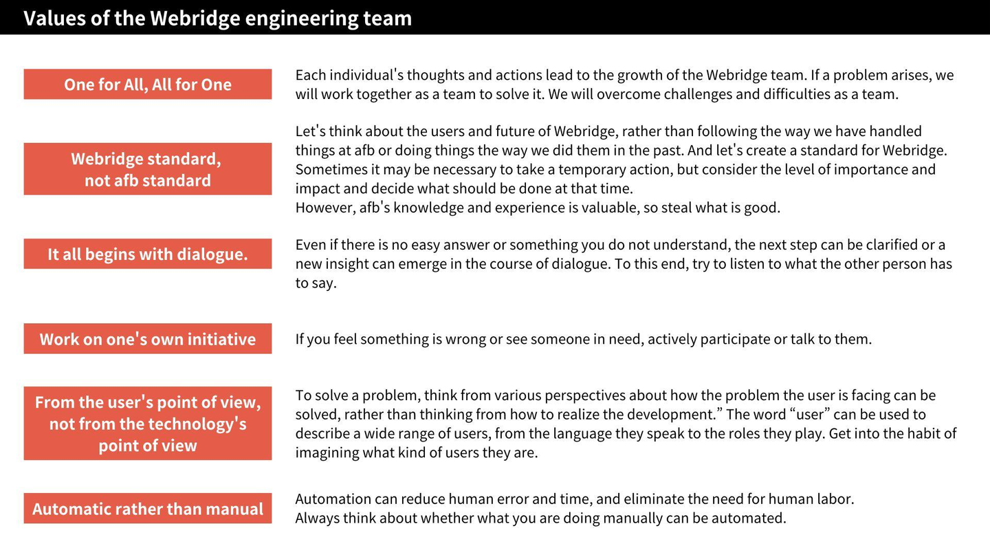 We try to share these values with new members when they join us. The best thing we have done is to “visualize” everything. By transcribing what we talked about into text or diagrams and checking each time, “Is this correct?” I think this has enabled us to proceed speedily and accurately.
