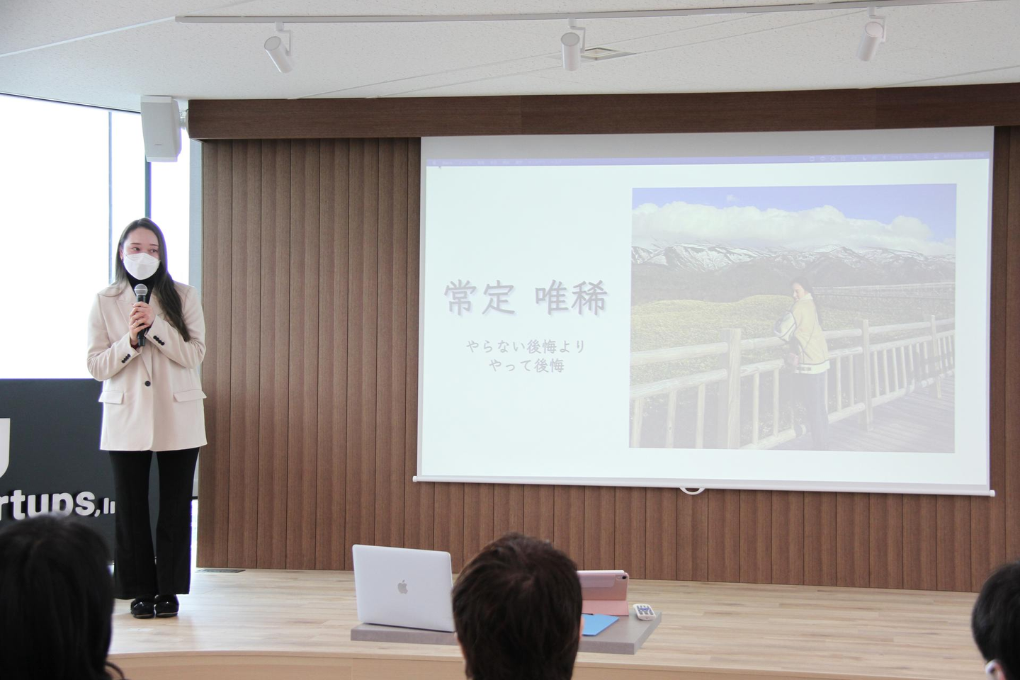 自己紹介タイムとして1人30秒で、自分のモットーを発表。なぜ、この言葉を大切にしているのか。自分がどんな人かを語ってくれました。リモート参加含む全社員の前での発表は緊張したことでしょう。