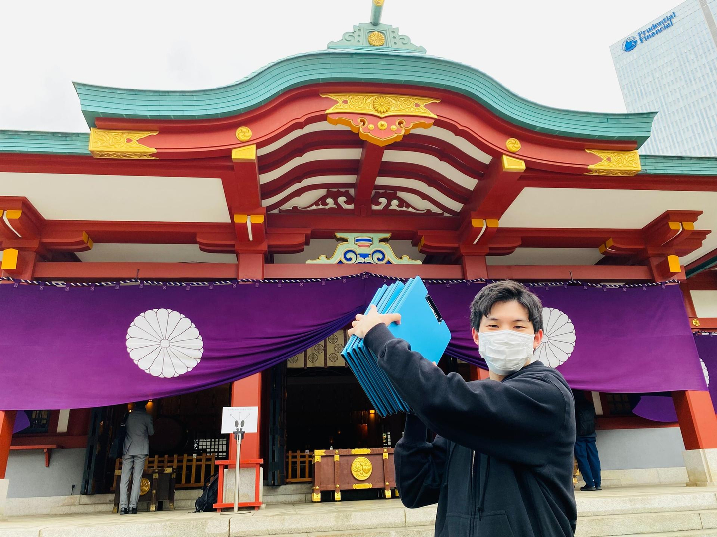 入社式に配布したファイルは21新卒の山本が、当日朝7:30に日枝神社にて祈願!「すくすくと育ってほしい」という想いを込めて長い時間祈ってくれていました👏 全員分、しっかり願いを込めてくれたそうですよ!
