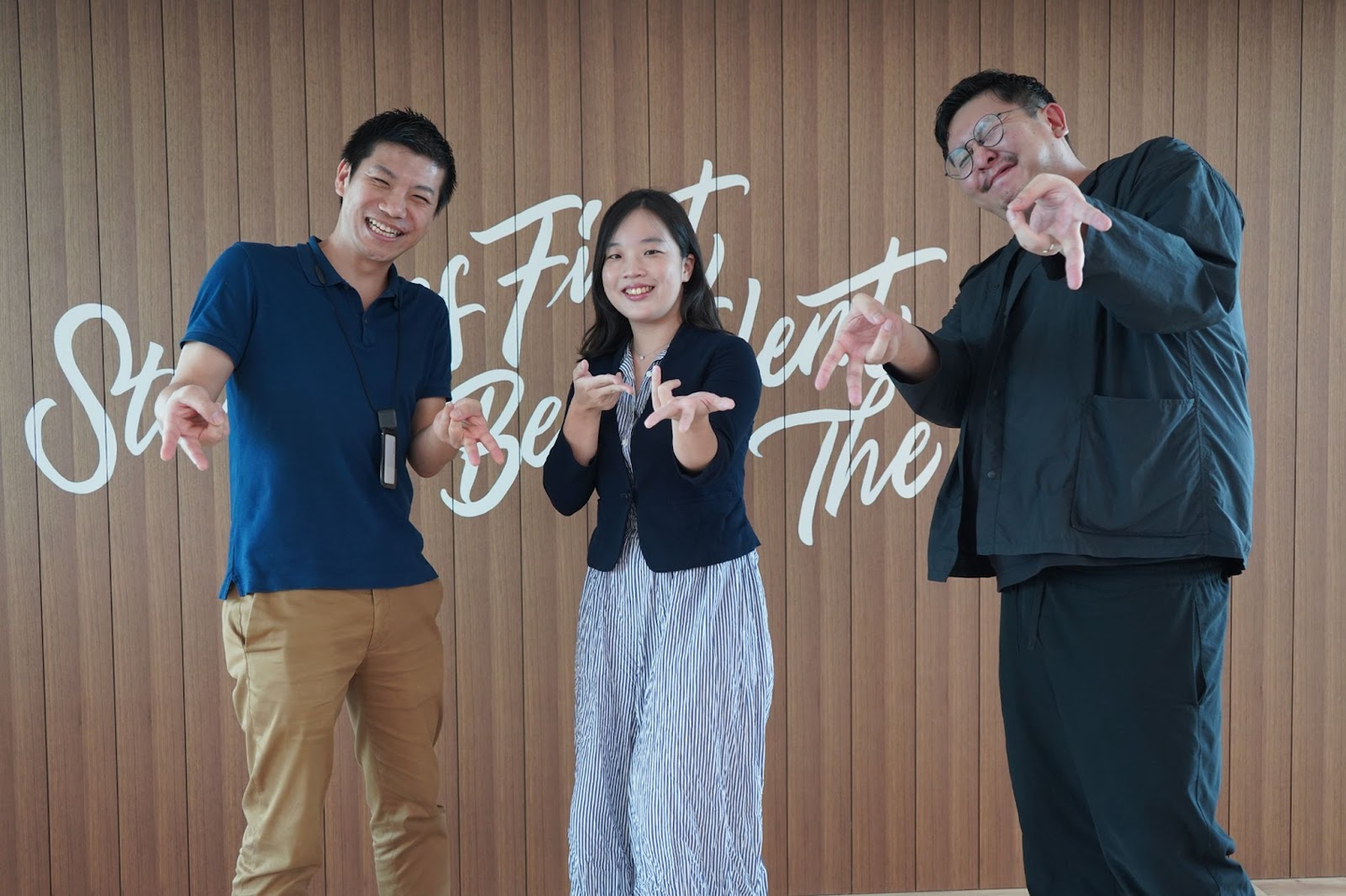 ▲秦野と同じオープンイノベーショングループの荒井勇作との3ショット。左から秦野、Joyce Cheng氏、荒井