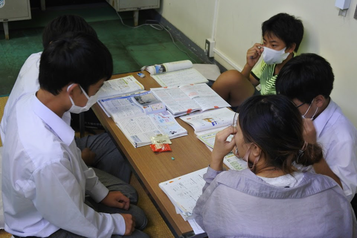 生徒たちは知のトビラの時間になると「自習室」という部屋で、持参した学習をそれぞれの勉強方法で進めていきます。特に10月〜11月は学校のテストが続き、生徒たちは自分の目標点数に向けてテスト勉強を頑張っていました。また、中学校3年生は受験勉強も佳境に入っており、そんな先輩の背中をみて自分たちも頑張ろうとしたり、志望校の話をしたりするなど後輩たちの刺激にもなっています。
