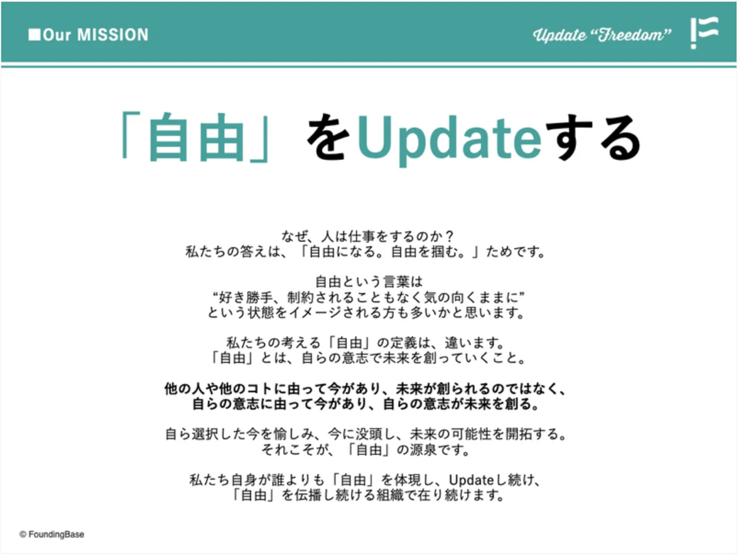 私たちFoundingBaseでは"「自由」をUpdateする”というミッションを掲げています。