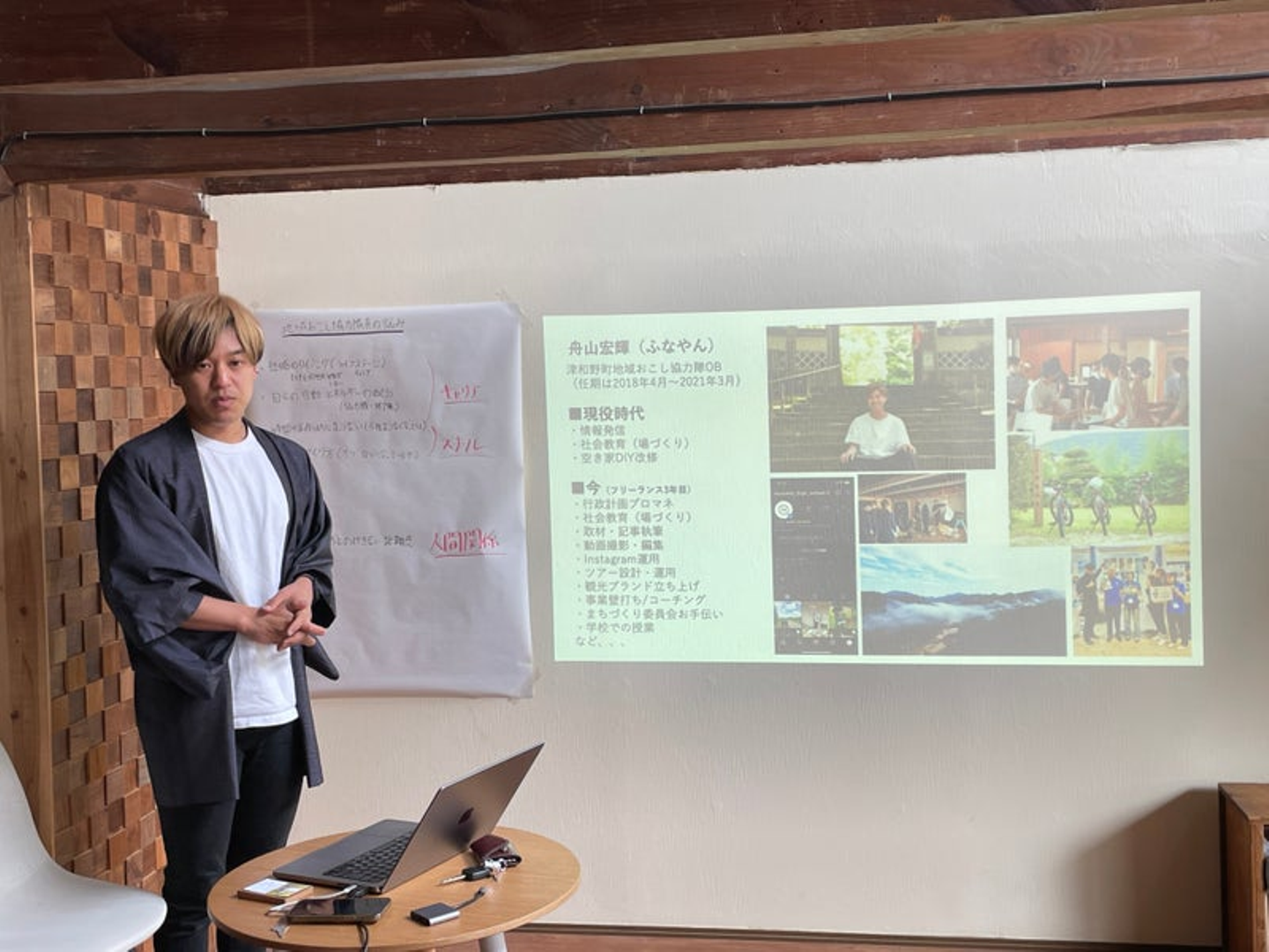 島根県津和野町の協力隊OBで、現在はフリーランスとして津和野町内外の各種プロジェクトを推進している舟山さん。隊員終了以降の収入推移というリアルな面!も見せていただきました。