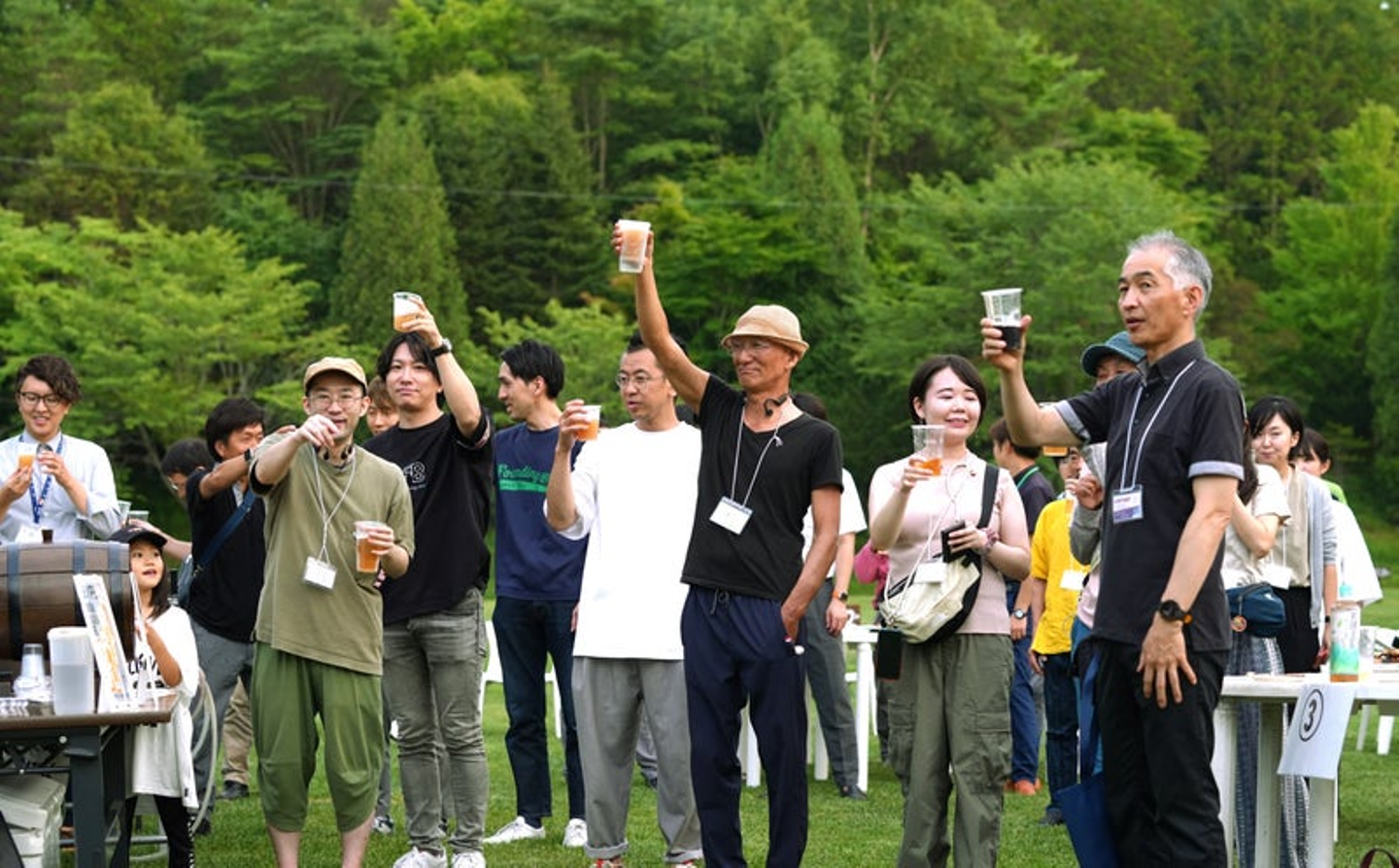 キャンプ場で乾杯!当日は地元のクラフトビール屋さんも駆けつけました