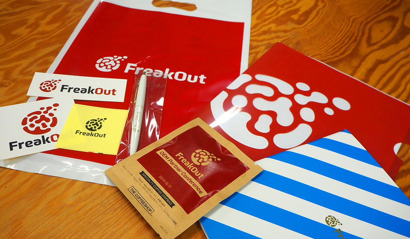 お越しいただいた皆さまに、フリークアウトのステッカーやノート、ドリップコーヒーなどのノベルティセットをプレゼント。