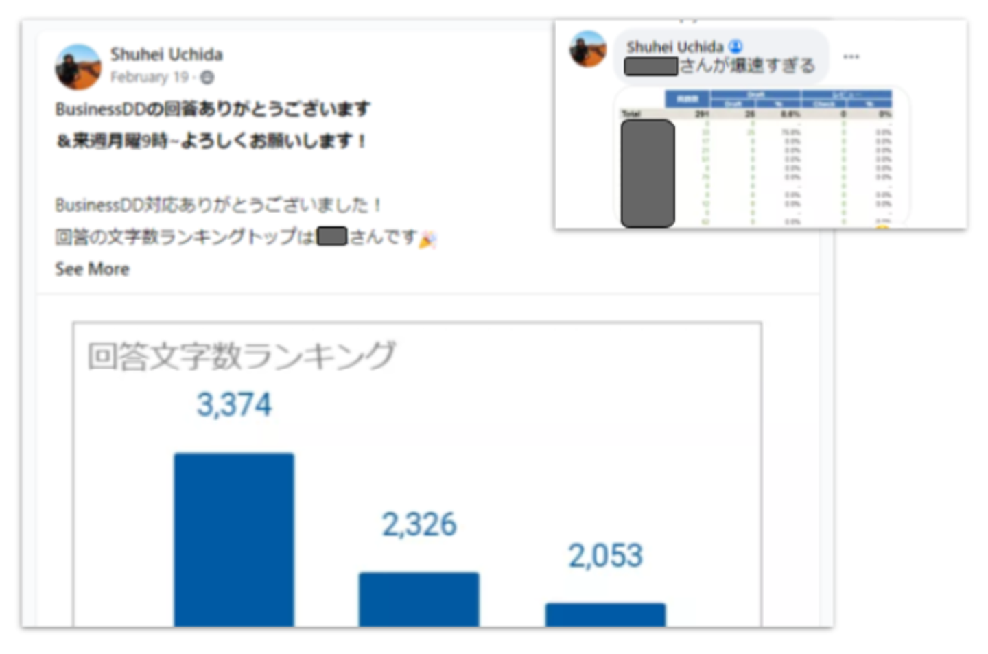 freeeでは担当者毎に回答率をリアルタイムで表示したり、回答速度ランキングや回答文字数ランキングを投稿したり、ゲーム性を醸成しました。