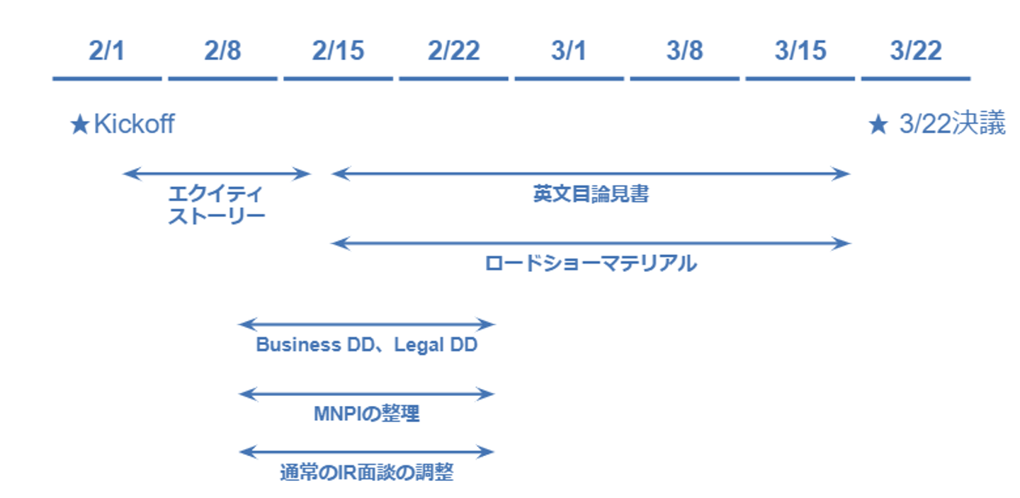 スケジュールはIPOと比べてかなり短いです。
