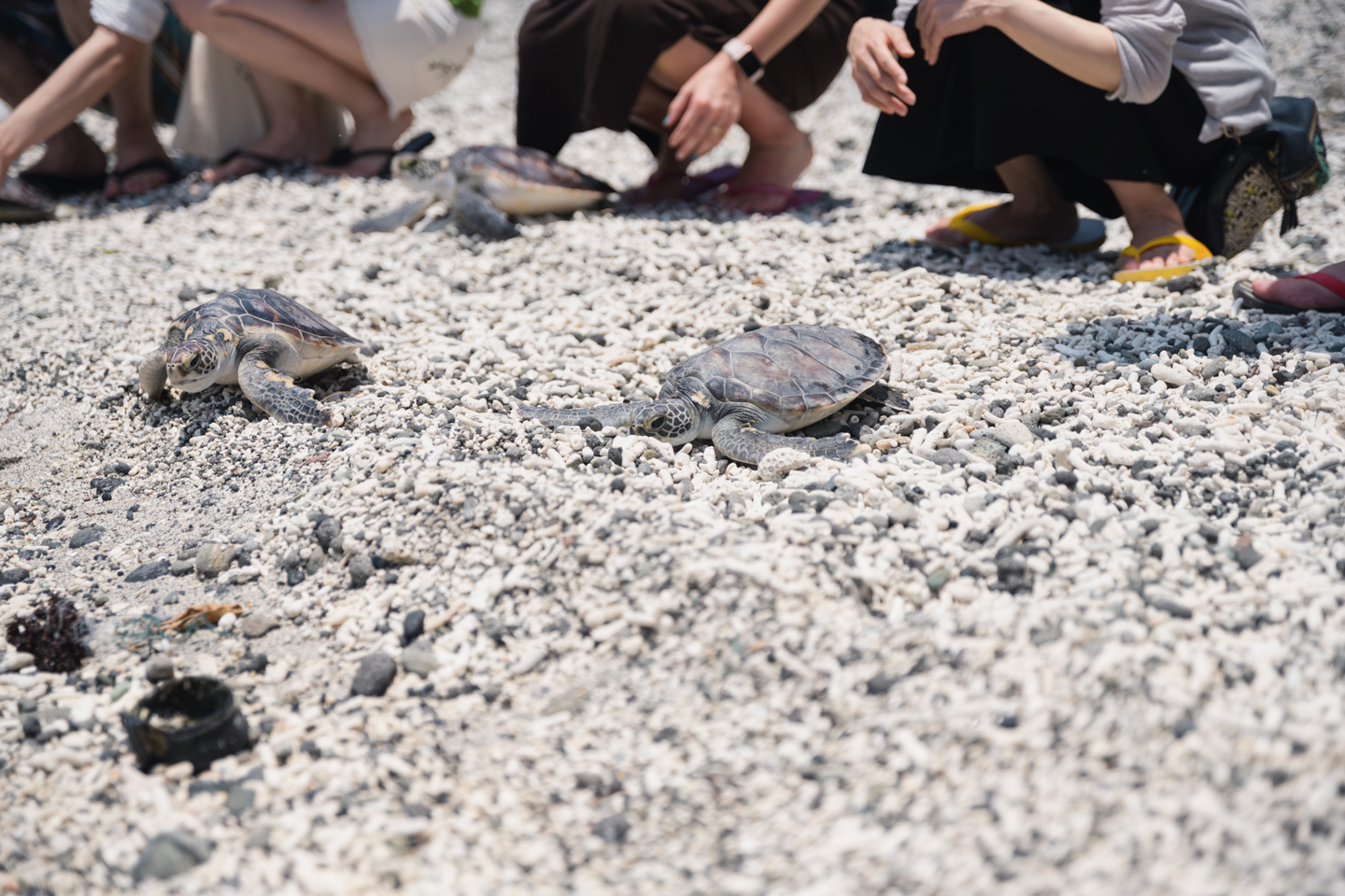 今回の小笠原諸島の滞在2日目は、幸運なことに、保護されたアオウミガメの赤ちゃんを放流する解禁日と重なっており、我々Freewill一行も放流を経験することができました!