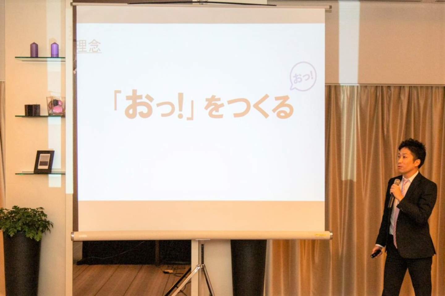 『「おっ!」をつくる』という理念を経営者のお立場から、そして、一社員としての目標をお話しいただきました