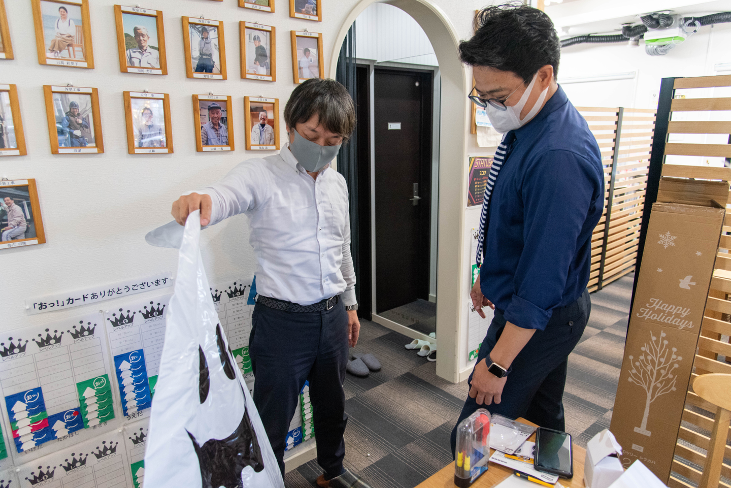 おばけを発見し膨らませ、、、(通りすがりの社員が、たまに手伝ってくれます^^)