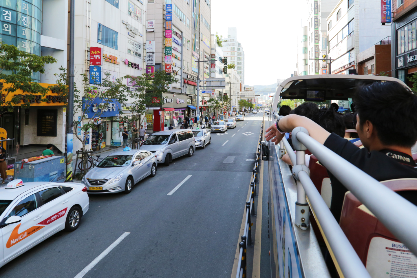 昼食後は、福岡でも見かけるオープントップバスに揺られて有名な観光地を周遊。前面のガラスにひびが入った釜山のオープントップバス。なかなかのスピードで街中を快走してくれるので、別のハラハラドキドキ感もあって皆、大興奮でした。