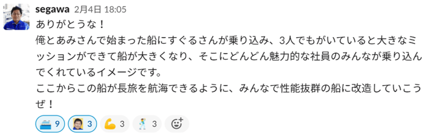 瀬川がミッションを船に例えたSlackを紹介しましょう。