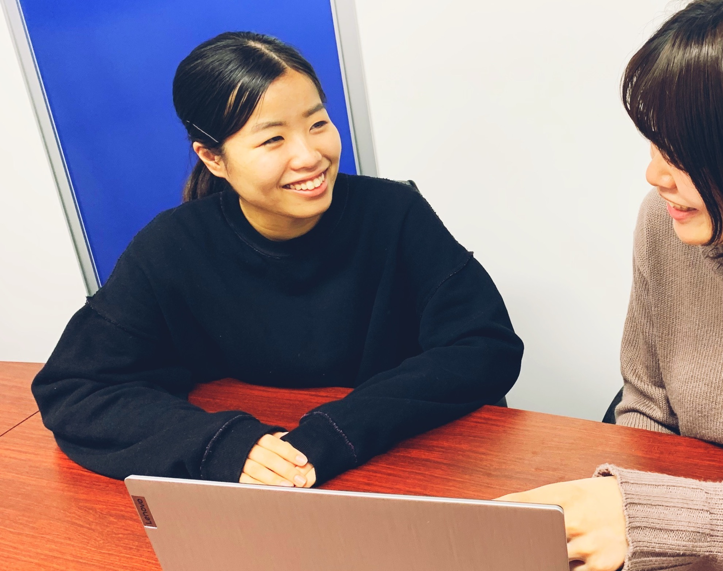 今はテレマーケティングの仕事で、対企業様に専用のシステムを用いてサービスのご提案をしています。まだ初めたばかりなので思うように成果を出すことが出来ていないのですが、どうしたらよりお客様にお話を聞いてもらえるか、先輩にアドバイスをいただきながら自分でも試行錯誤を繰り返して、毎日勉強させてもらっています。