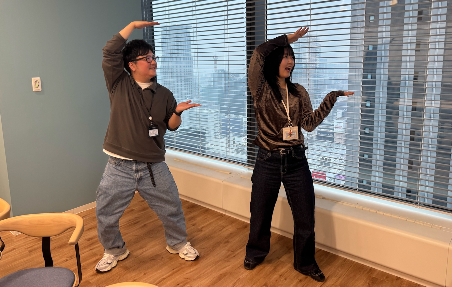 ※撮影者のパワハラではありません。お二人の【完全なる自発的おふざけアクション】です。普段は至って真面目に働いております。