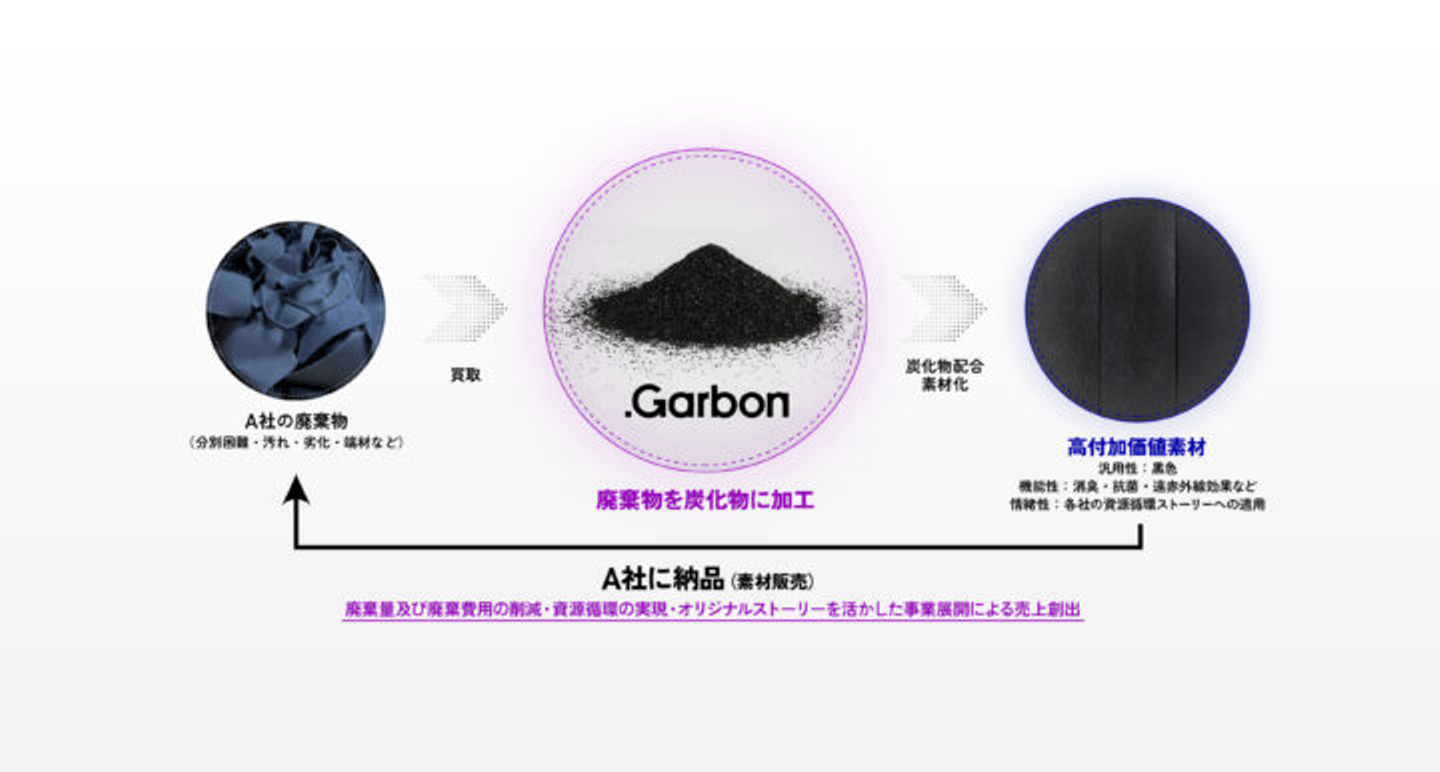 炭化技術で廃棄ゼロ社会へ あらゆる※1廃棄物を、独自開発の人工皮革など「選べる素材(再資源)」に変換する新循環ソリューション「.Garbon」始動