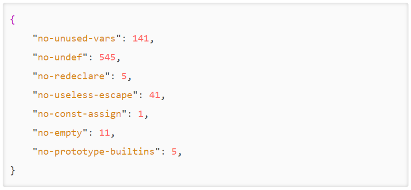 まずはじめに、GameWith のサービス側に既に ESLint が導入されているので、まず最初にダッシュボードの JavaScript に ESLint を実行し、どんなエラーがどれくらい出るのか確認しました。