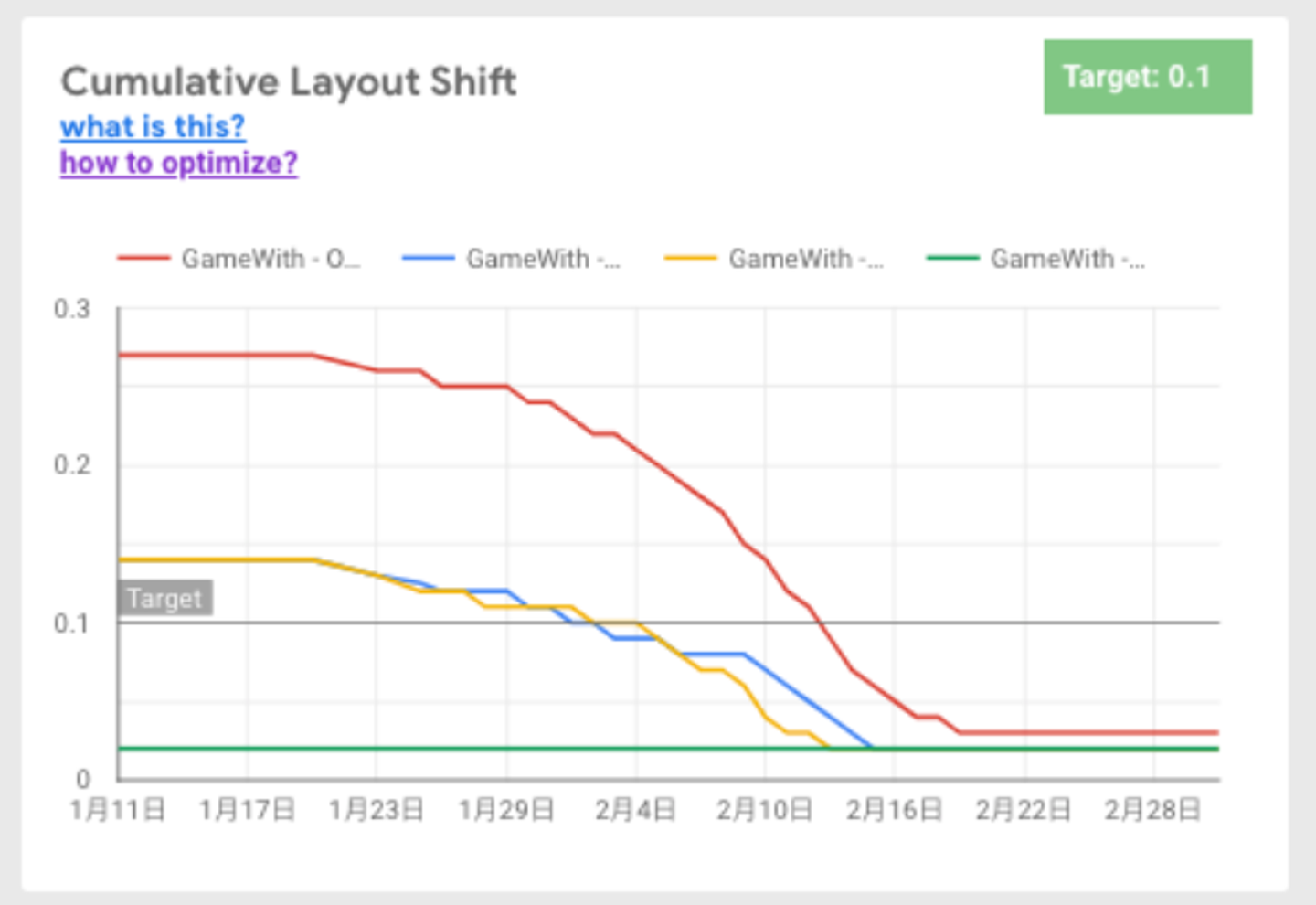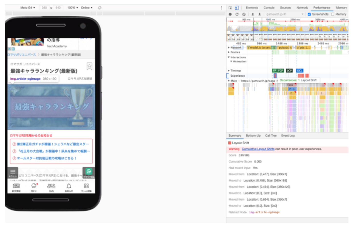GameWith では Cumulative Layout Shift のスコアが基準に達していないことがわかったので、Cumulative Layout Shift の改善を行っていくことにしました。