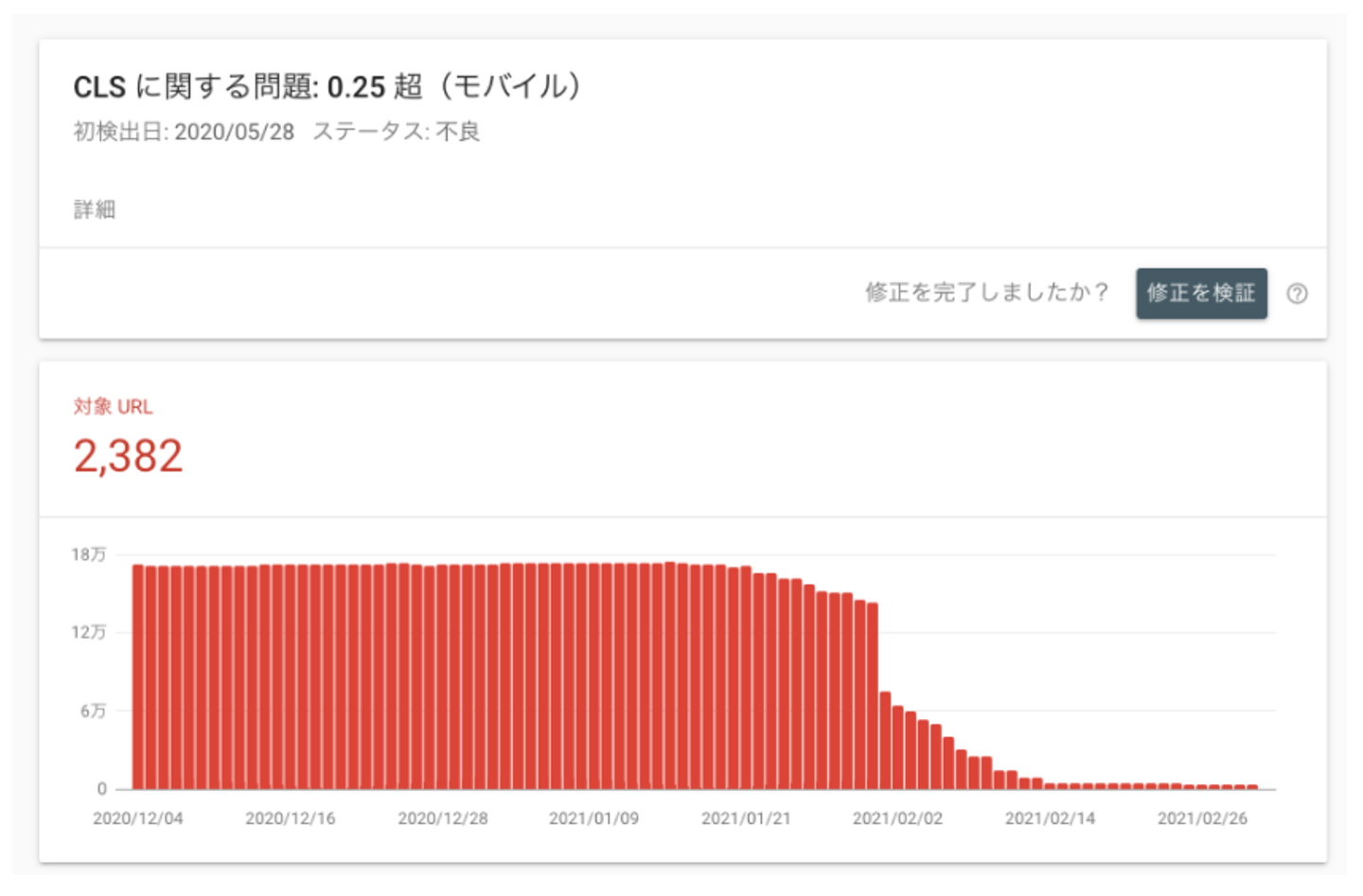 17万以上あった不良URLはほぼなくなり、WebAutoPerf のグラフもしきい値の 0.1 を大きく下回っています!