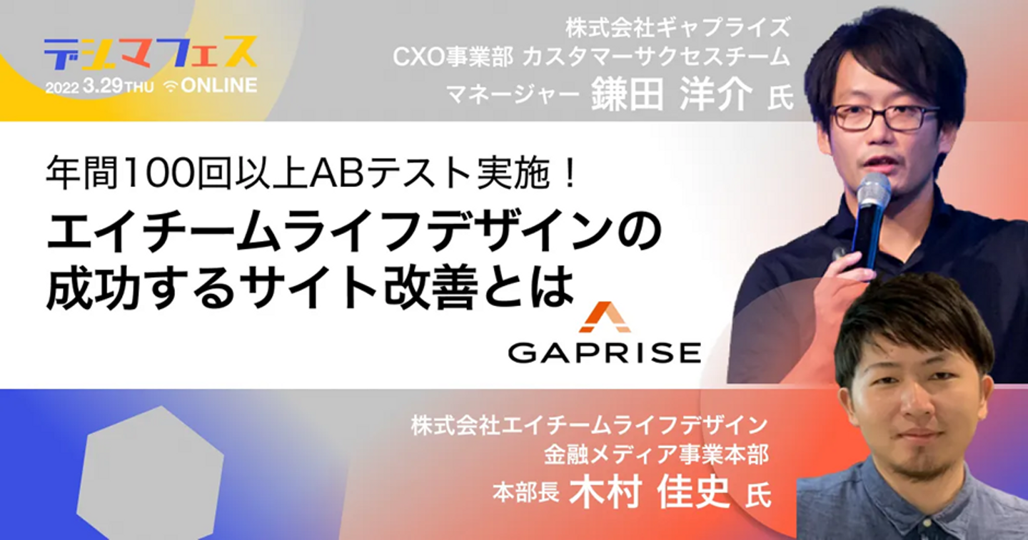 デジタルマーケティングの革命〜』にて「年間100回以上ABテスト実施!エイチームライフデザインの成功するサイト改善とは」を実施しました。コンバージョン率125%アップなど多くの成果を生み出している株式会社エイチームライフデザインの木村佳史様をお迎えし、"成功するサイト改善ポイント”についてお伺いしました。