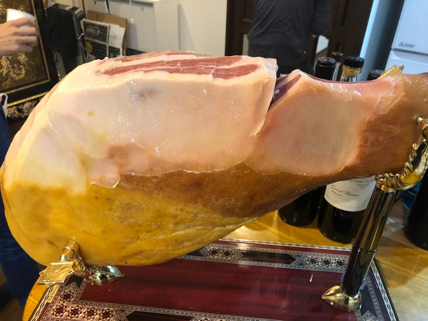 巨大な骨付き肉(正体はイタリアンのお店に置いてあるようなハム肉でした!)がキッチンの前に置かれていて、さっそく驚かされました(笑)