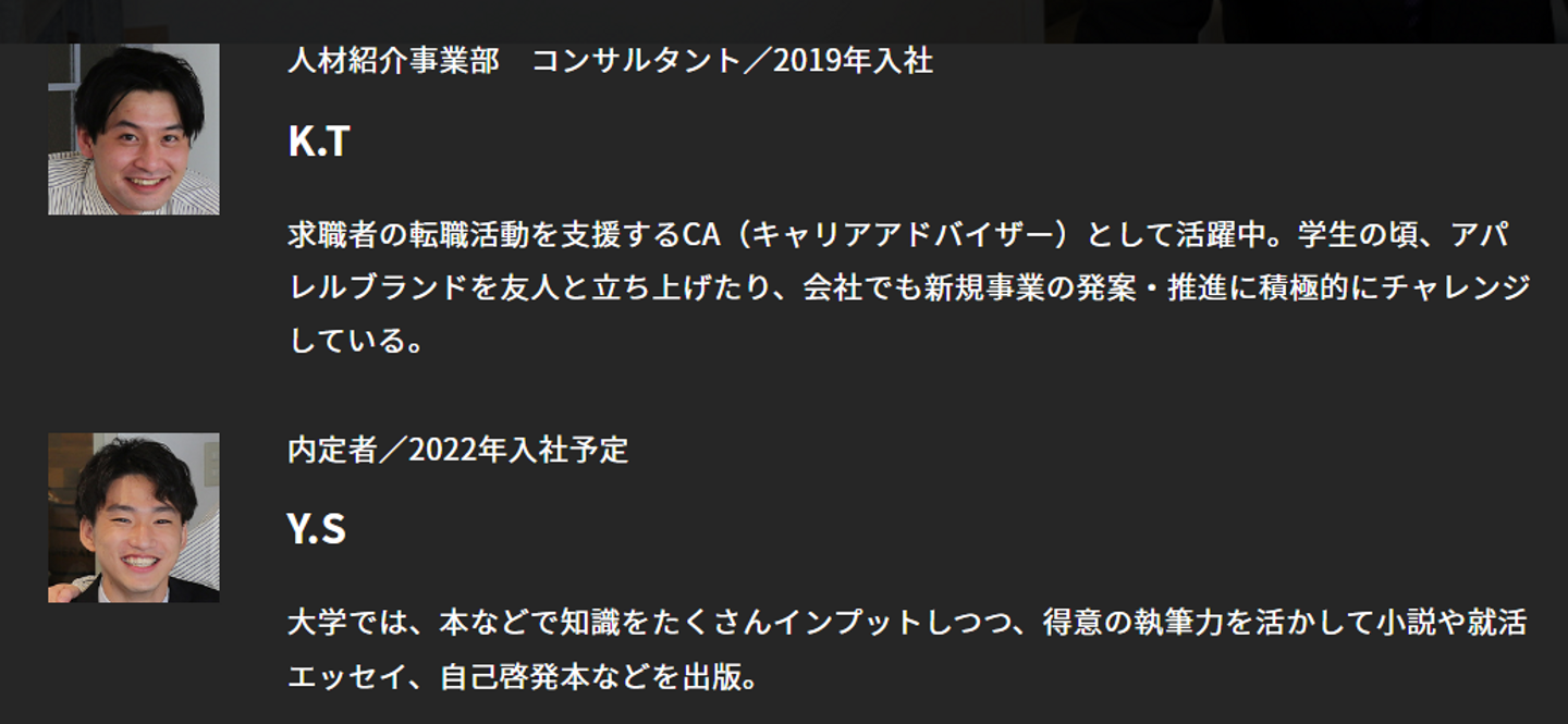 Y.S: 人材紹介事業は、人の人生の分岐点に関わる責任重大な業務だと認識しています。お客様・社会にいち早く貢献できるよう、僕も精一杯頑張ります!