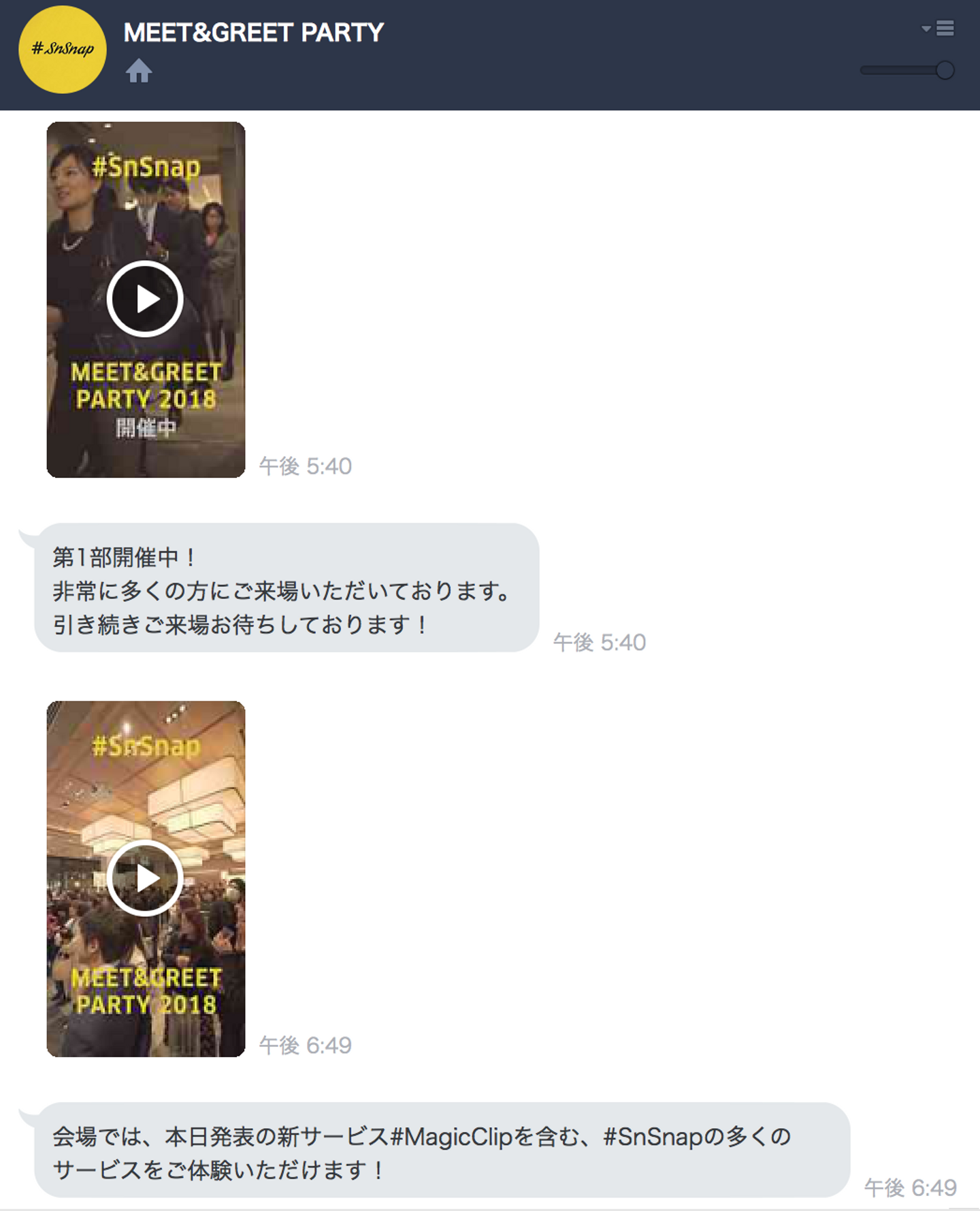 今回のパーティで使われたLINE画面