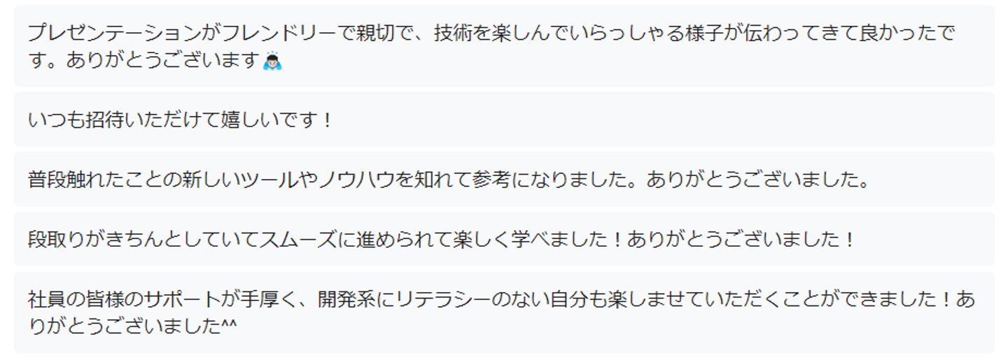 アンケートでもポジティブなリアクションをたくさんいただけて、