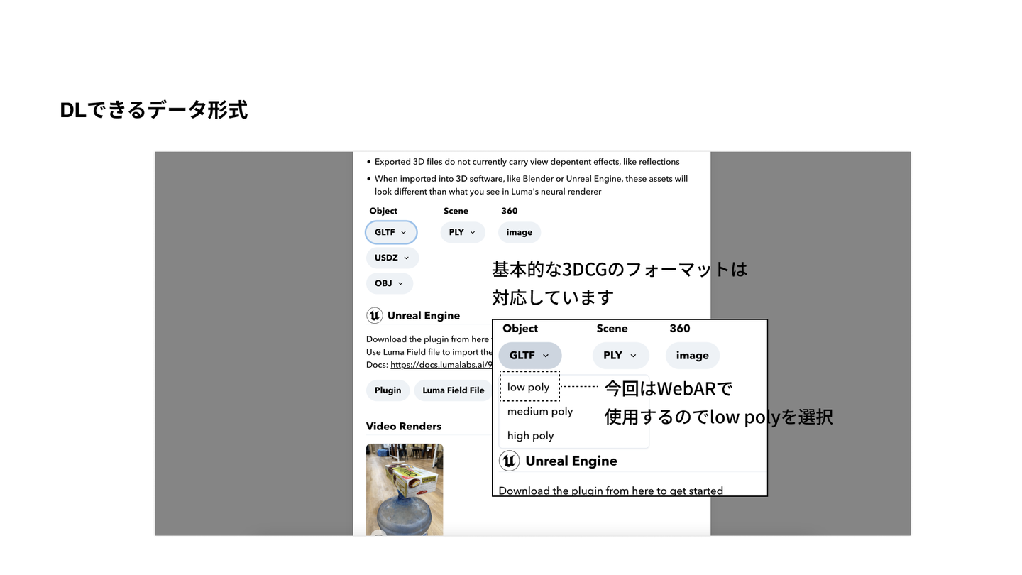 Luma AIのデータはlow polyでもものによっては20000ポリゴンあり、