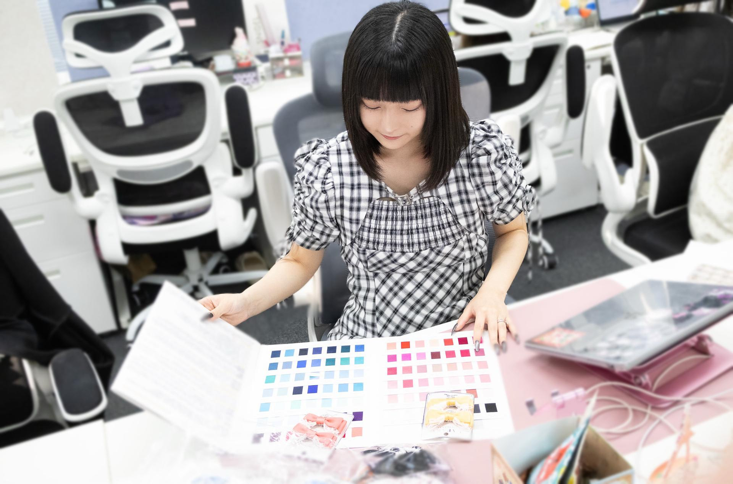 ▼仕事中の田沼さん。素材や色味にこだわって商品デザインを考えています。