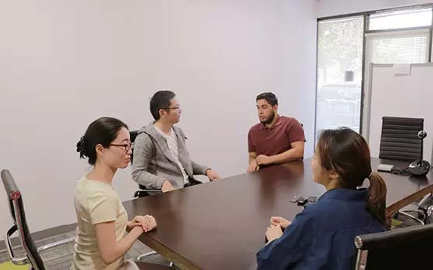 新オフィスの会議室【その1】。明るい室内でオープンに話し合えます。