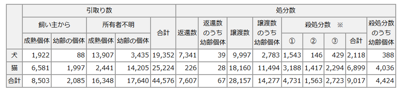 出典:環境省「犬・猫の引取り及び負傷動物等の収容並びに処分の状況」