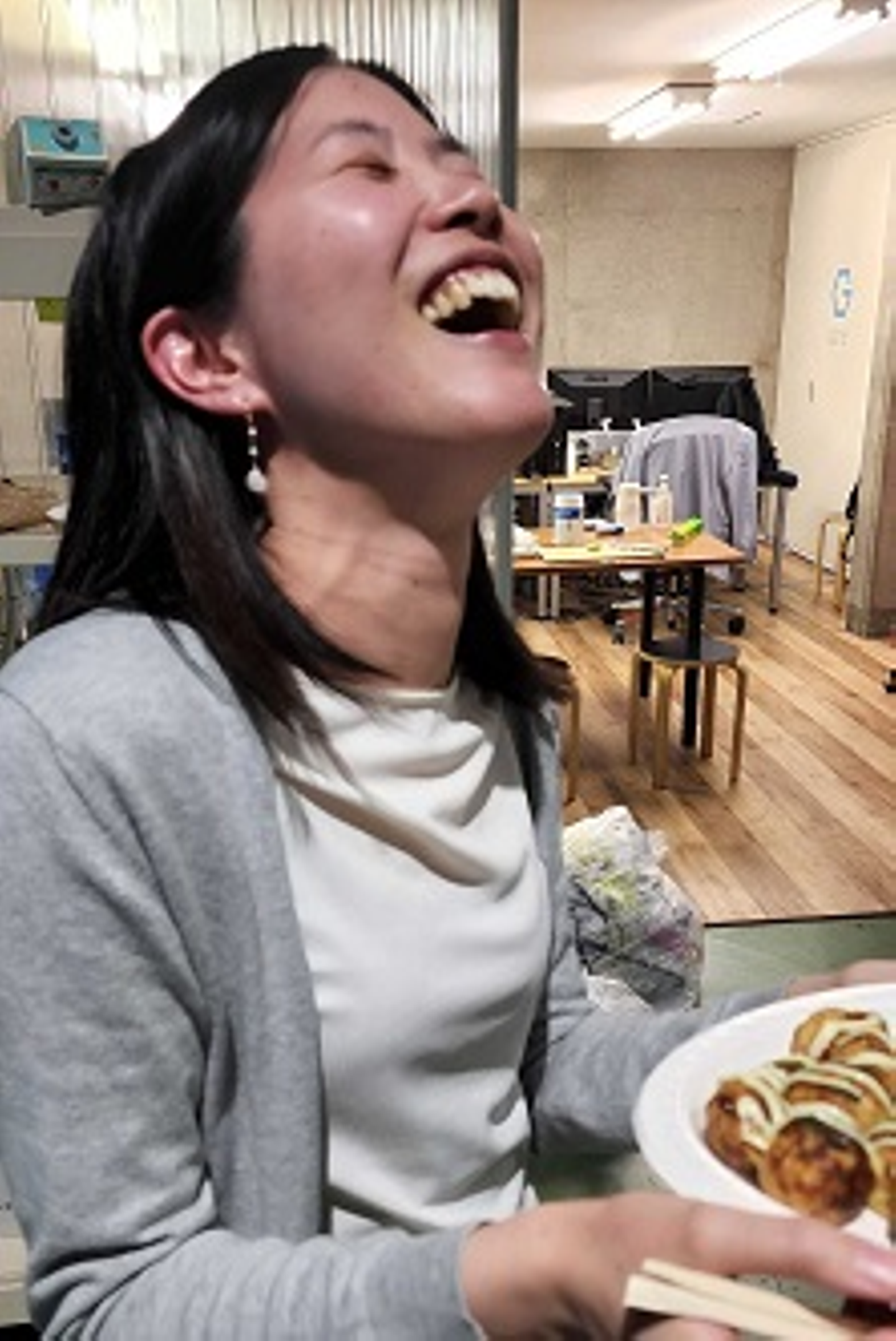 大爆笑している訳ではなく、たこ焼きを頬張ったら熱かったそうです。(本人確認済)
